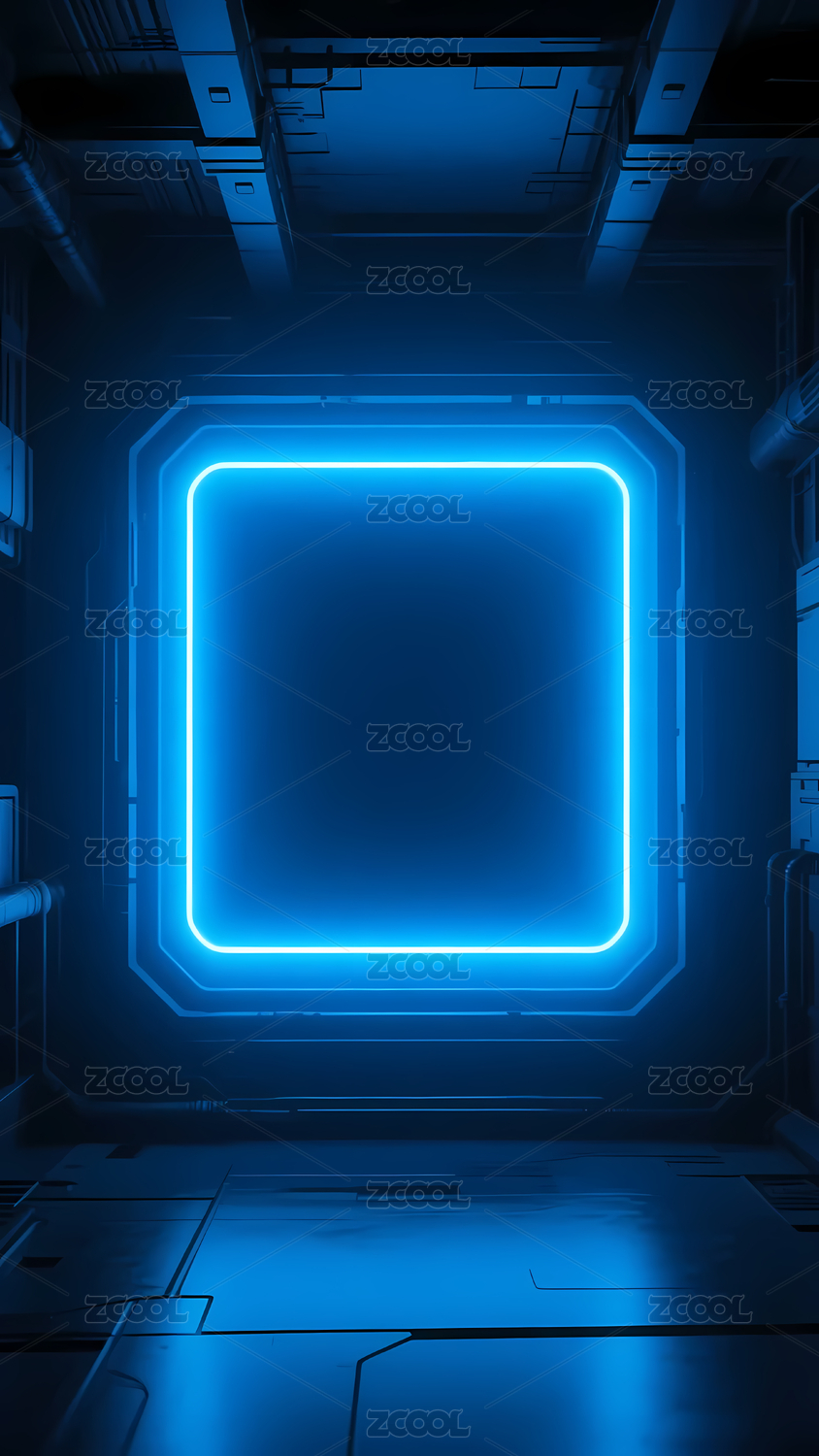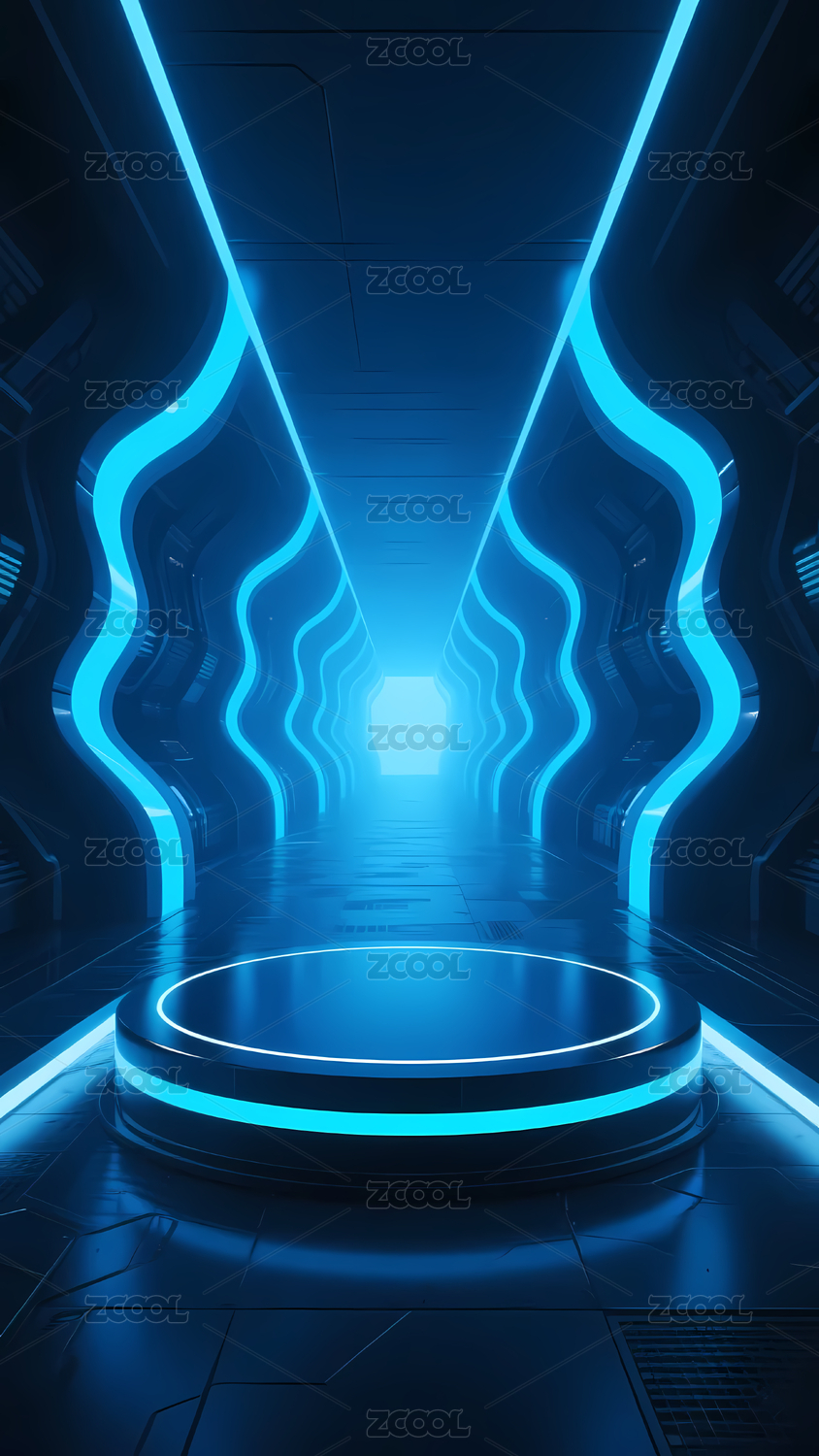蓝色,未来,科技,灯光,现代,冷色,通道,六边形,发光,金属
