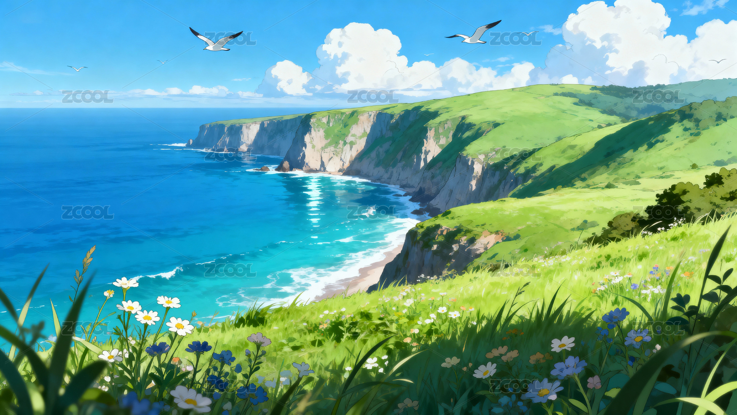 水彩,插画,夏天,夏季,海边,沙滩,海水,风景,风光,景色