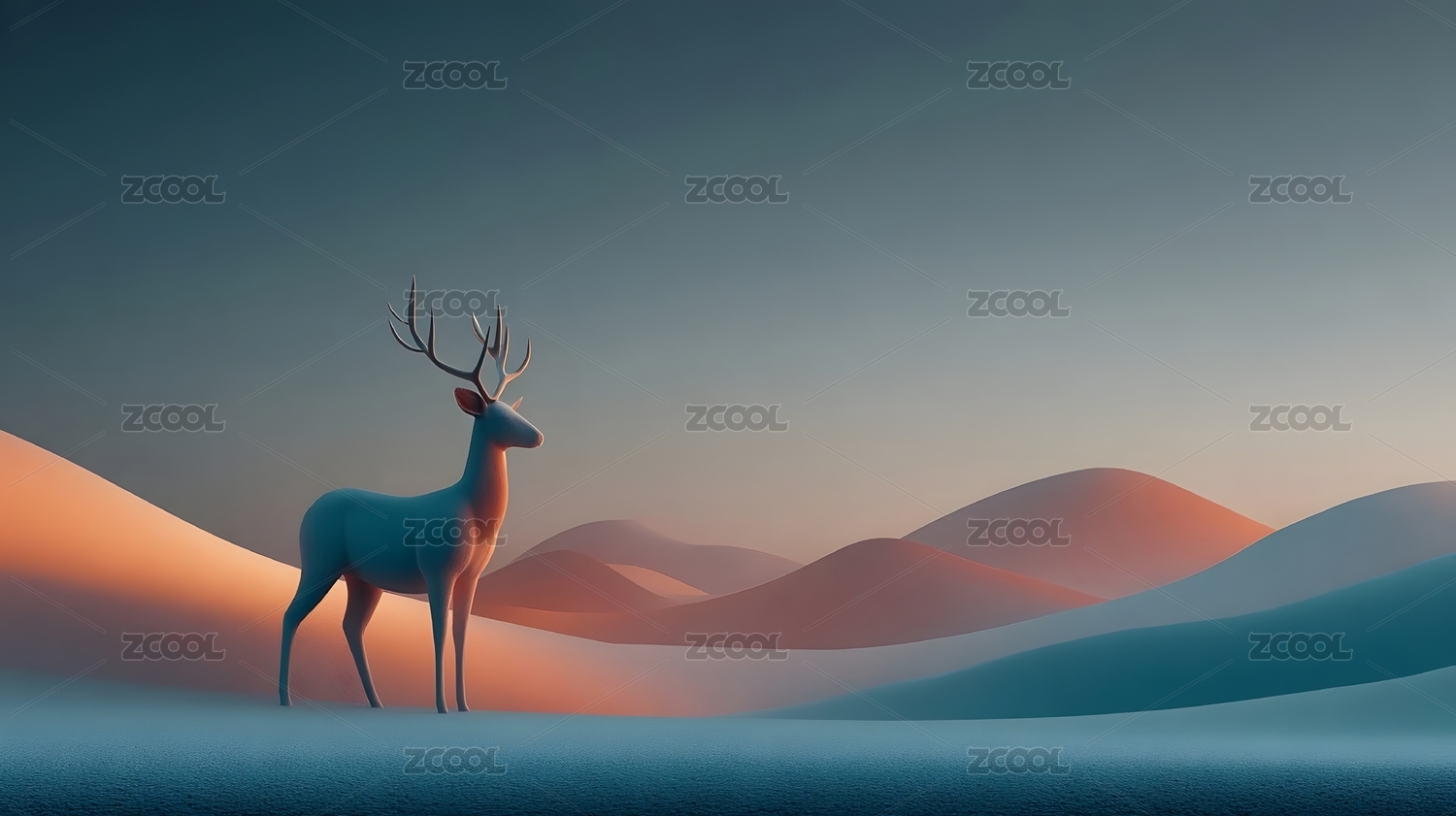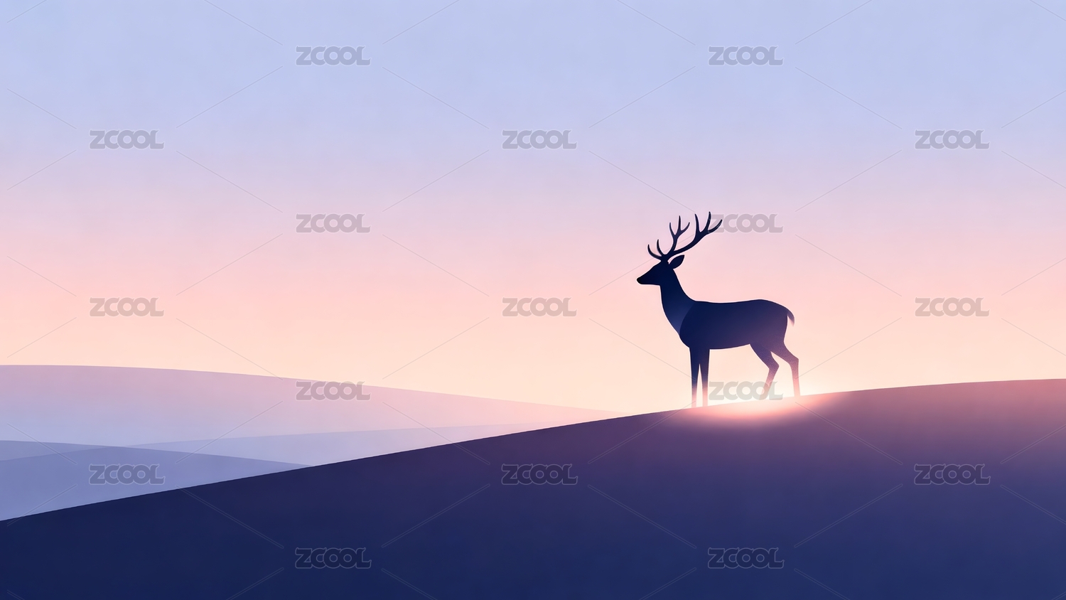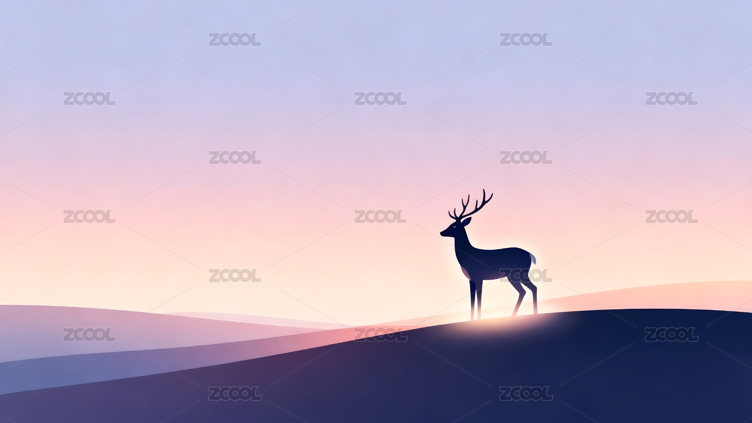 鹿的剪影与山峦