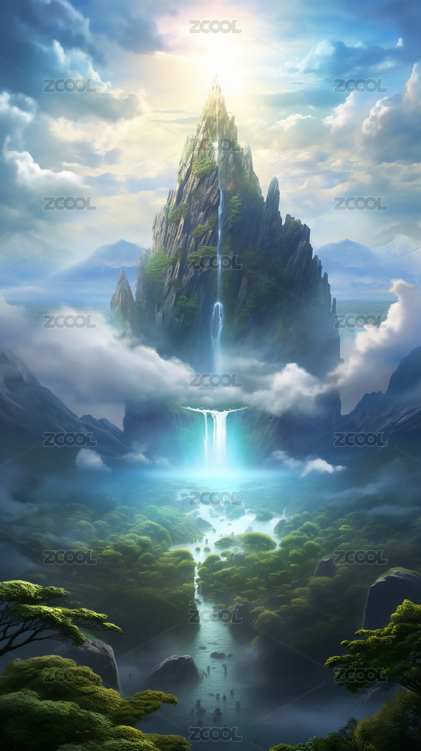 梦幻仙境山川瀑布