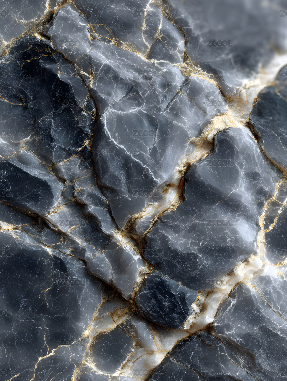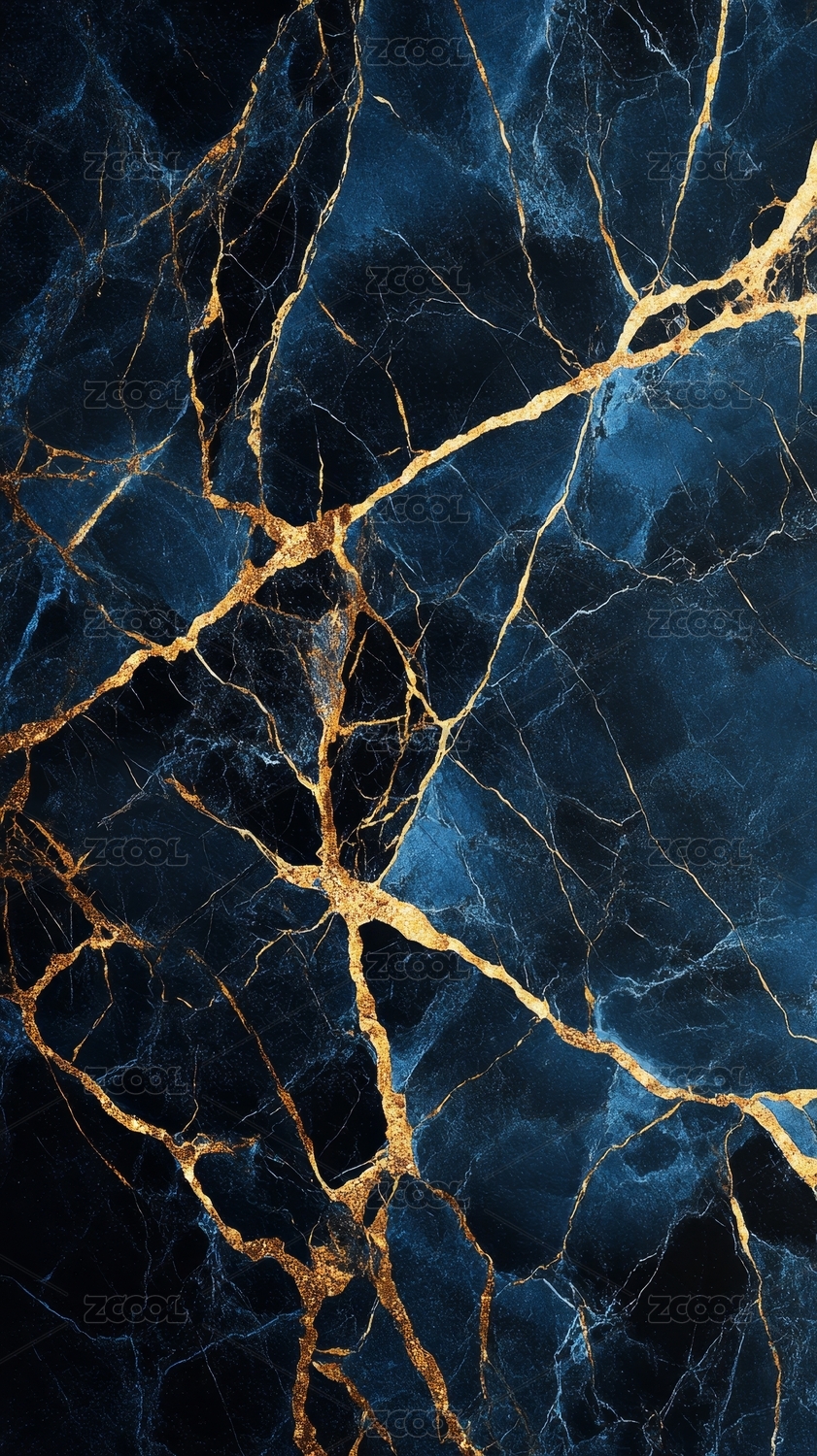 深蓝与金色交织的大理石纹理