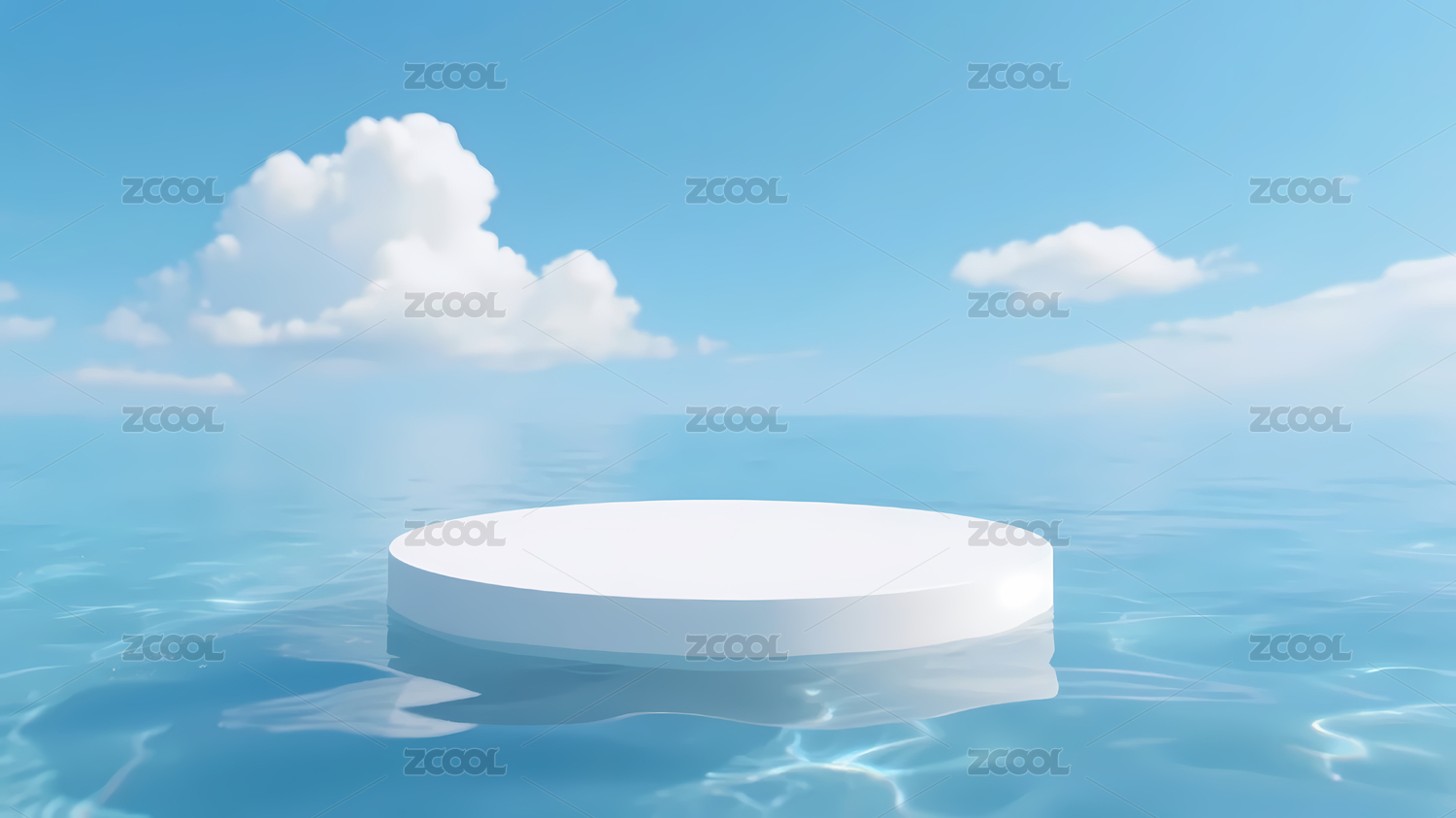 蓝色,水面,宁静,白色,圆形,平台,纯净,蓝天,白云,漂浮