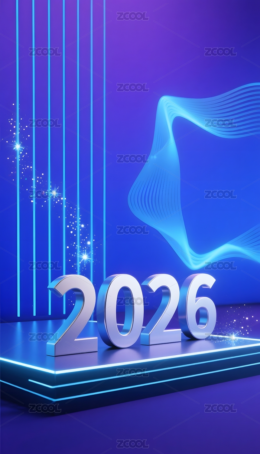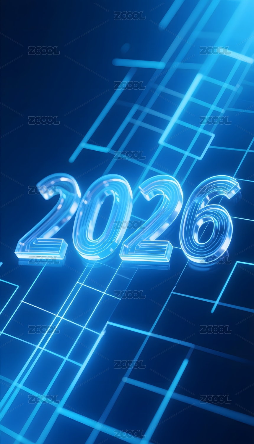 数字,2026,金属,蓝色,科技,未来,线条,背景,设计,结构