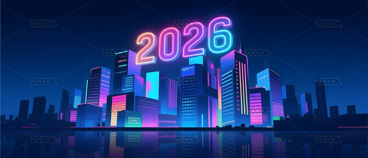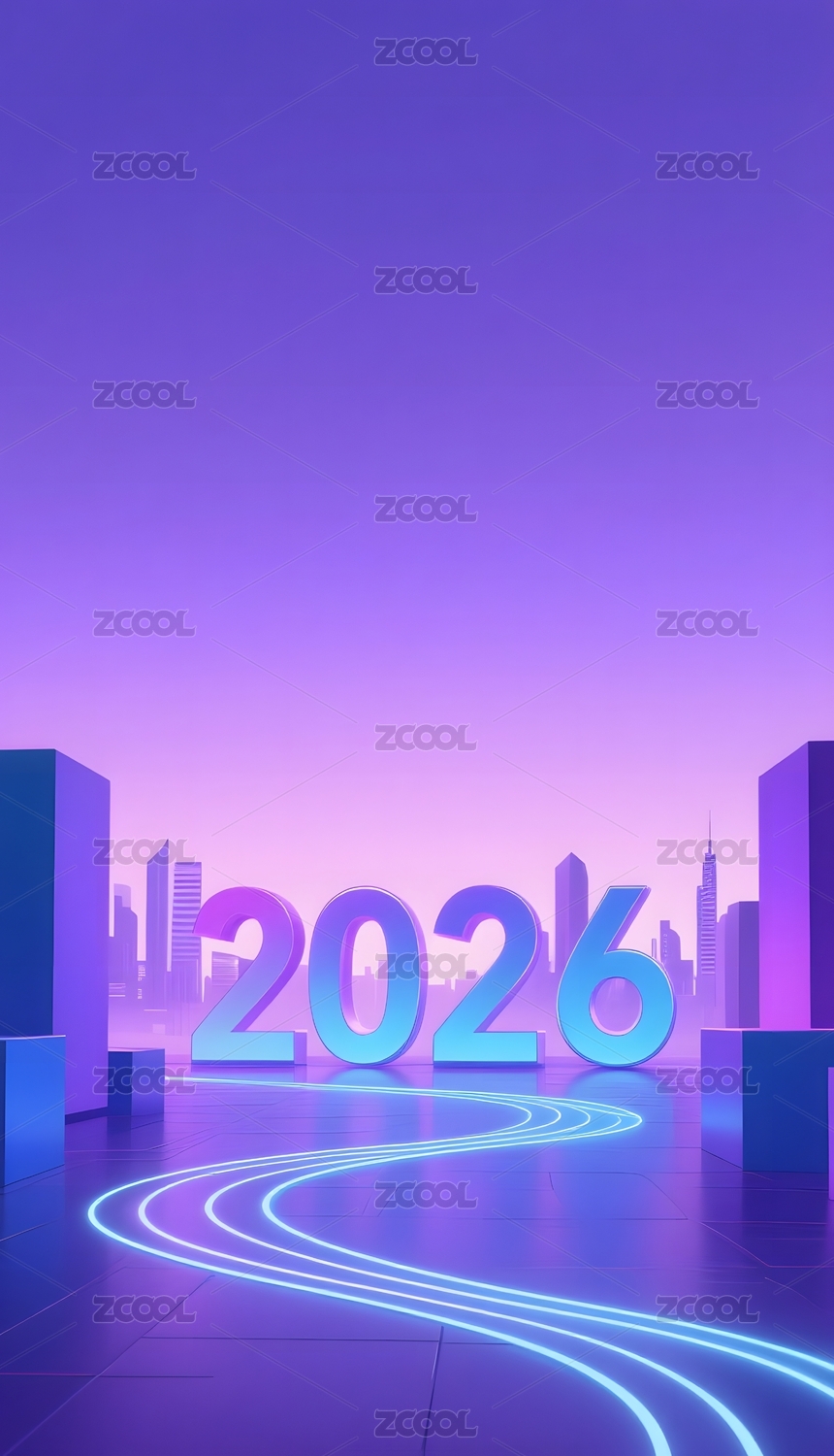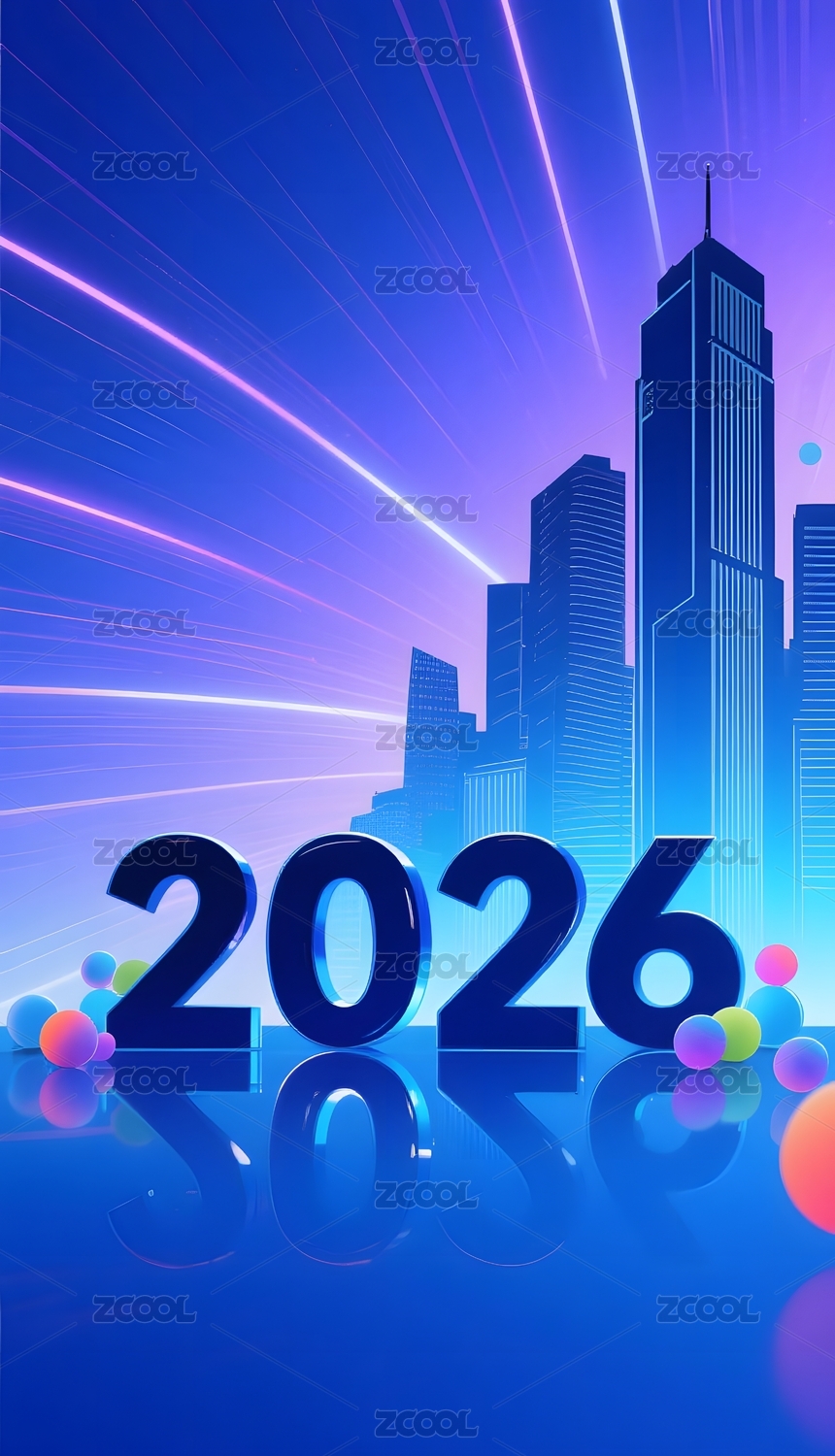 数字,2026,蓝色,发光,线条,设计,结构,天空,建筑,光影