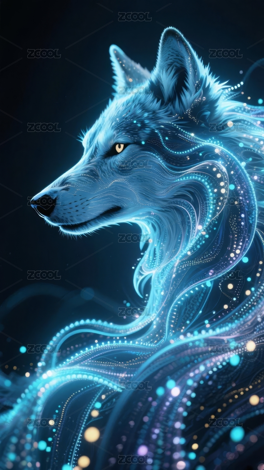 元宇宙数字成像一只散发绿色荧光的狼背景