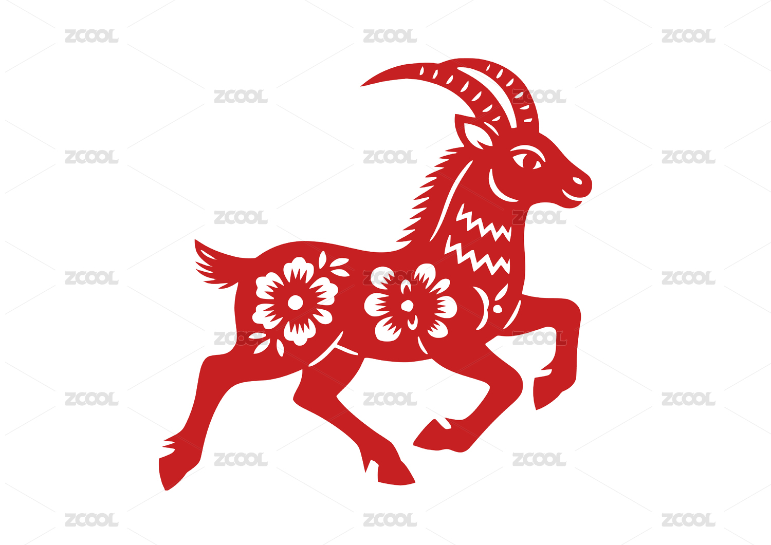 中国传统剪纸风格的山羊图案