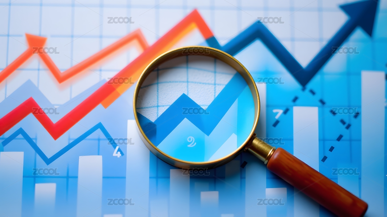 图表,放大镜,数据,分析,趋势,增长,统计,商业,投资,金融