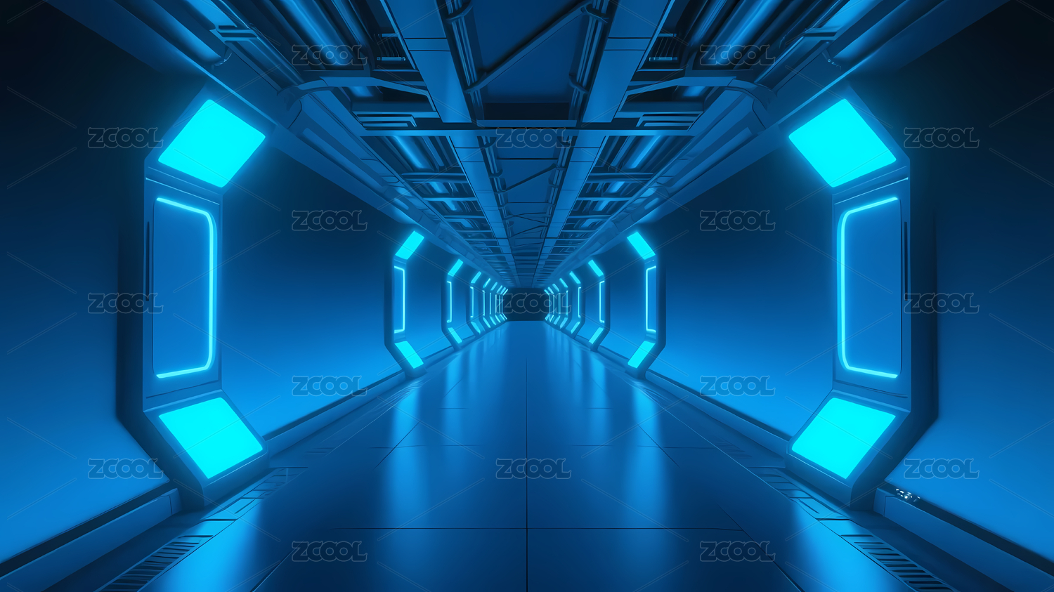 设计,蓝色,未来,科技,光影,神秘,走廊,灯光,冷调,反射