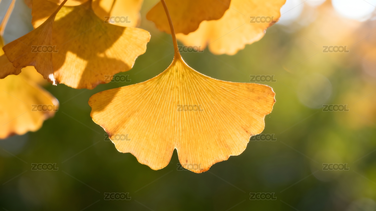 金黄银杏叶光影特写