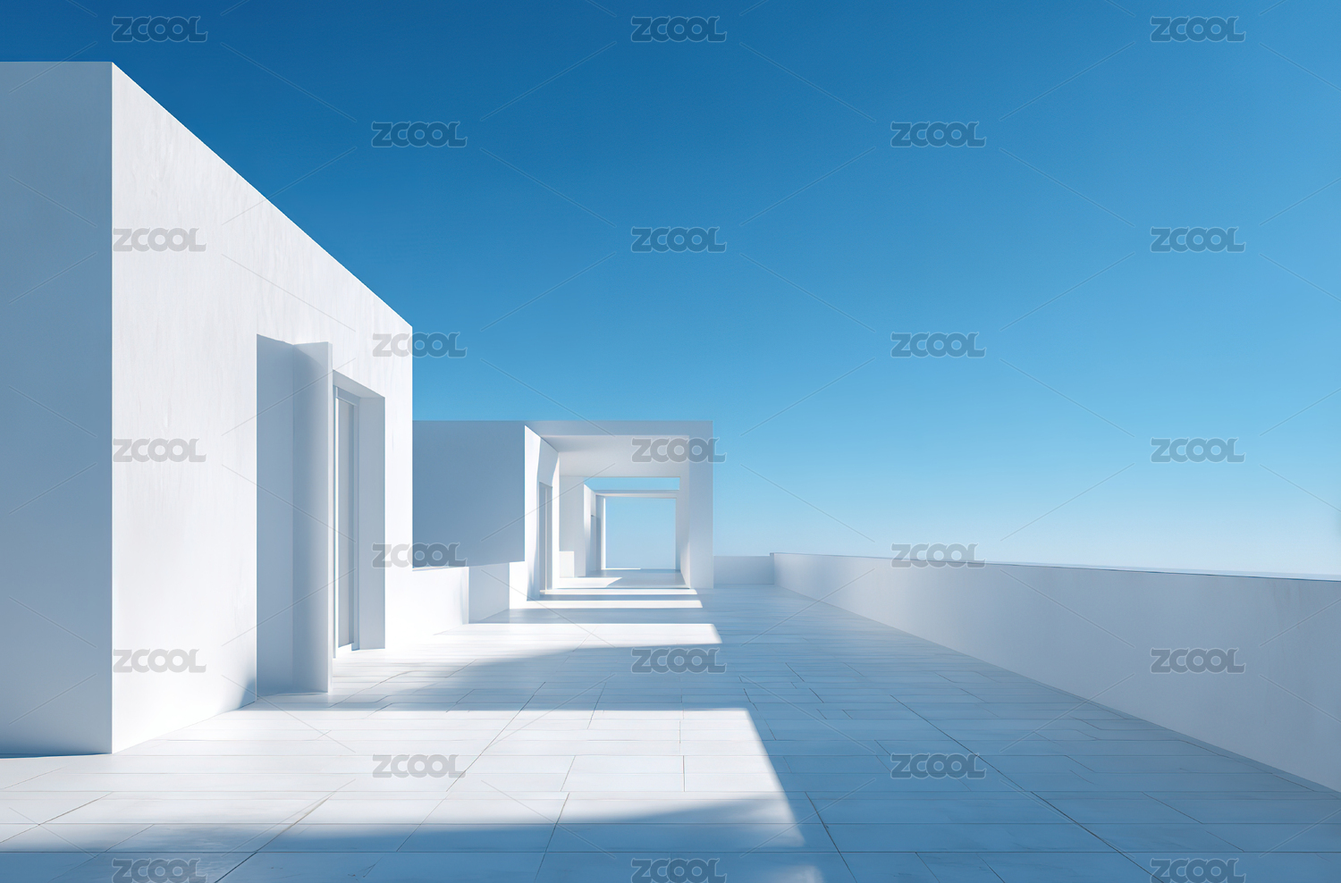 极简,建筑,白色,蓝色,天空,几何,结构,现代,空旷,空间