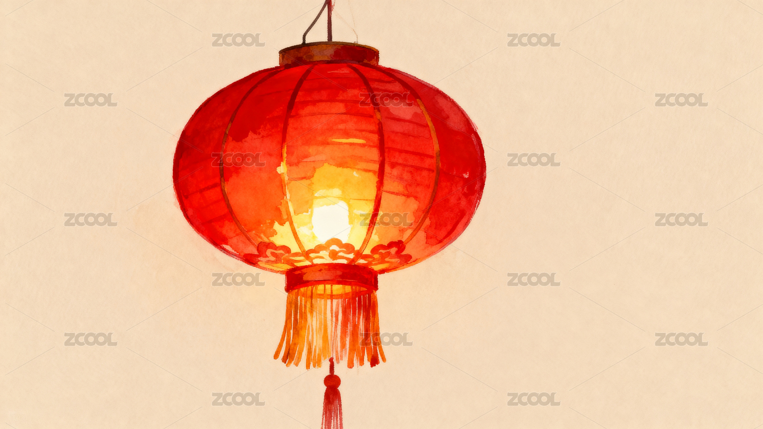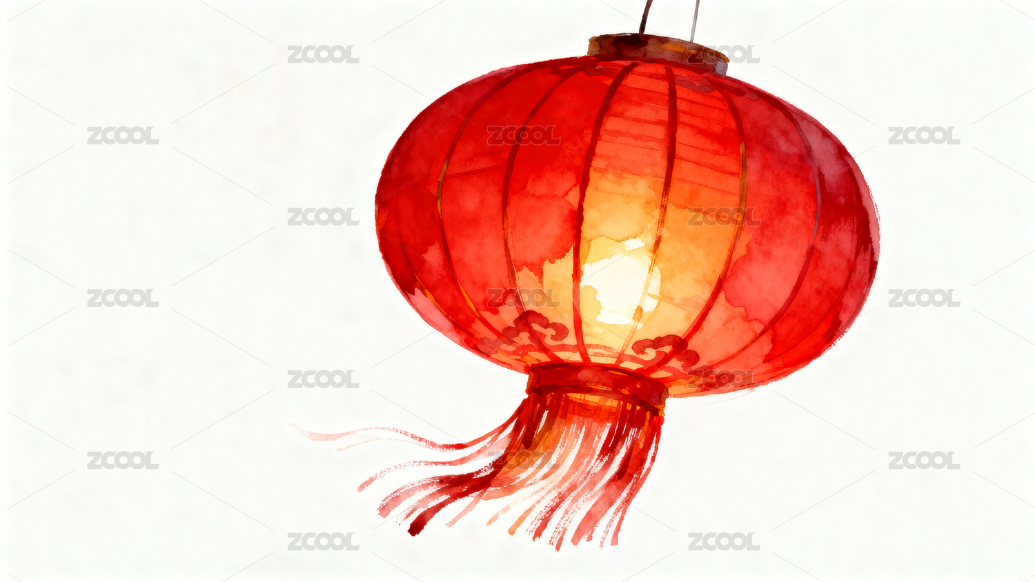 红色灯笼挂在上方留出下面空白区域水彩插画