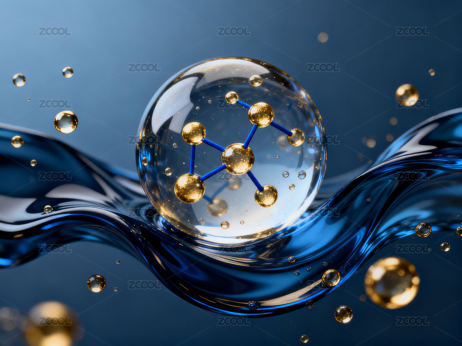 分子,水滴,蓝色,金色,科技,科学,液体,球体,抽象,化学