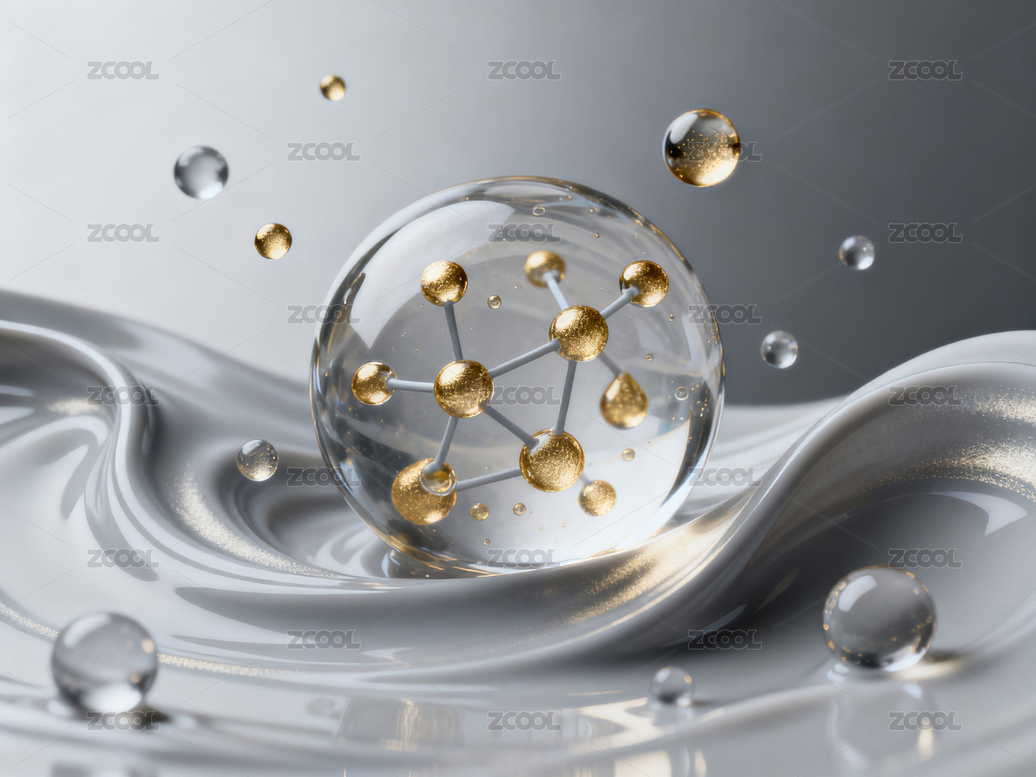 分子,结构,金色,颗粒,液体,波浪,透明,球体,科技感,光泽
