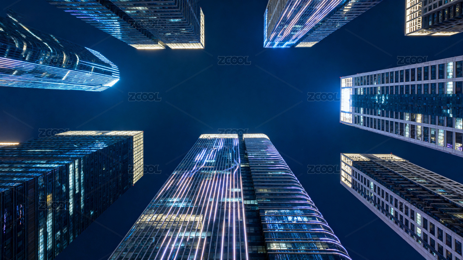 夜幕下高楼林立仰拍视角