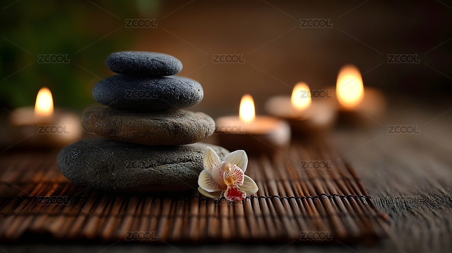 按摩店SPA唯美石头花朵蜡烛背景
