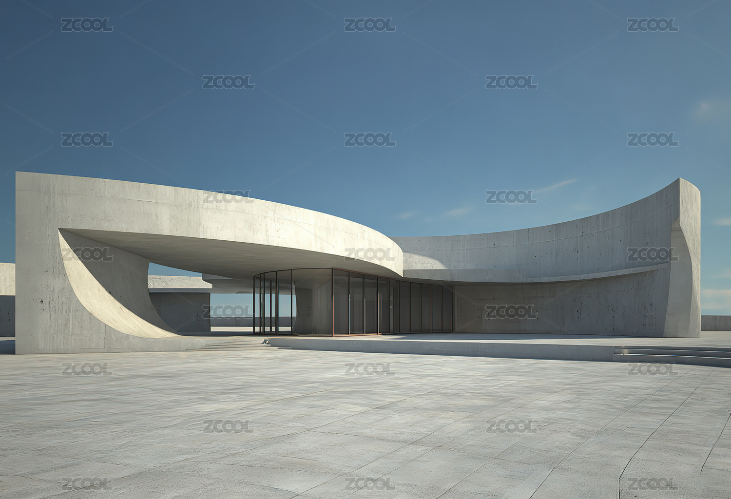 三维渲染极简现代艺术中心建筑空间
