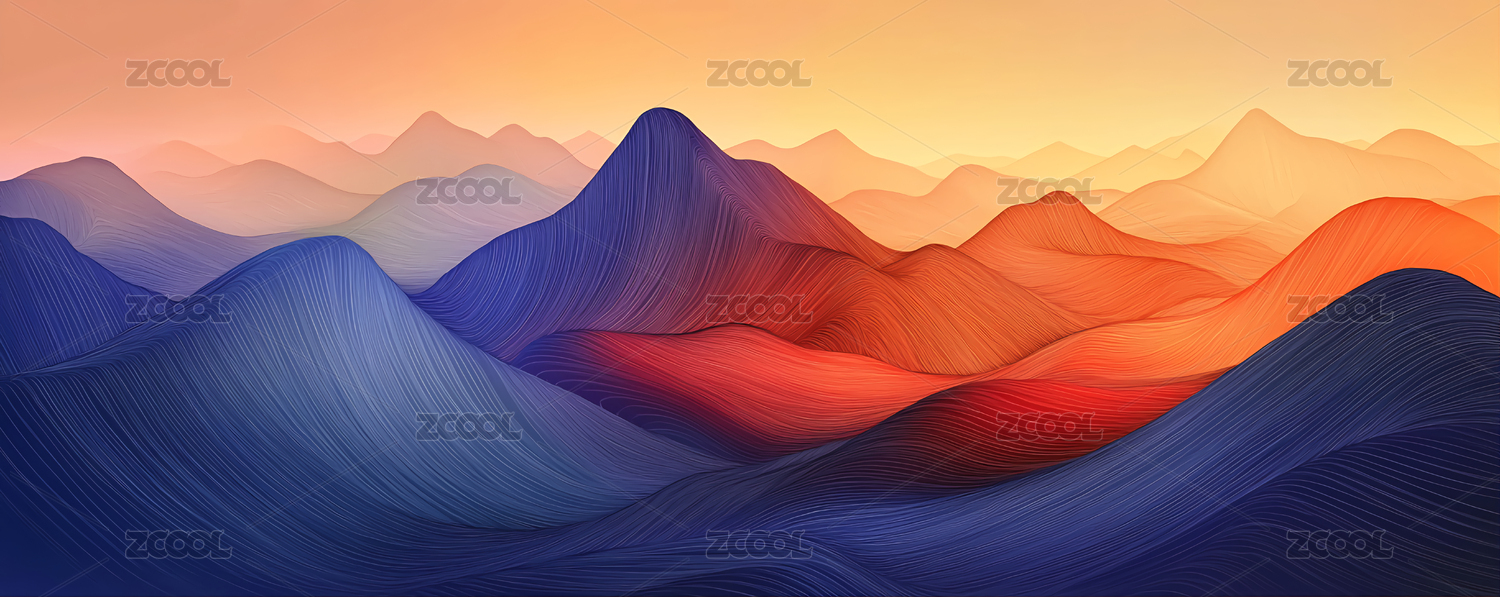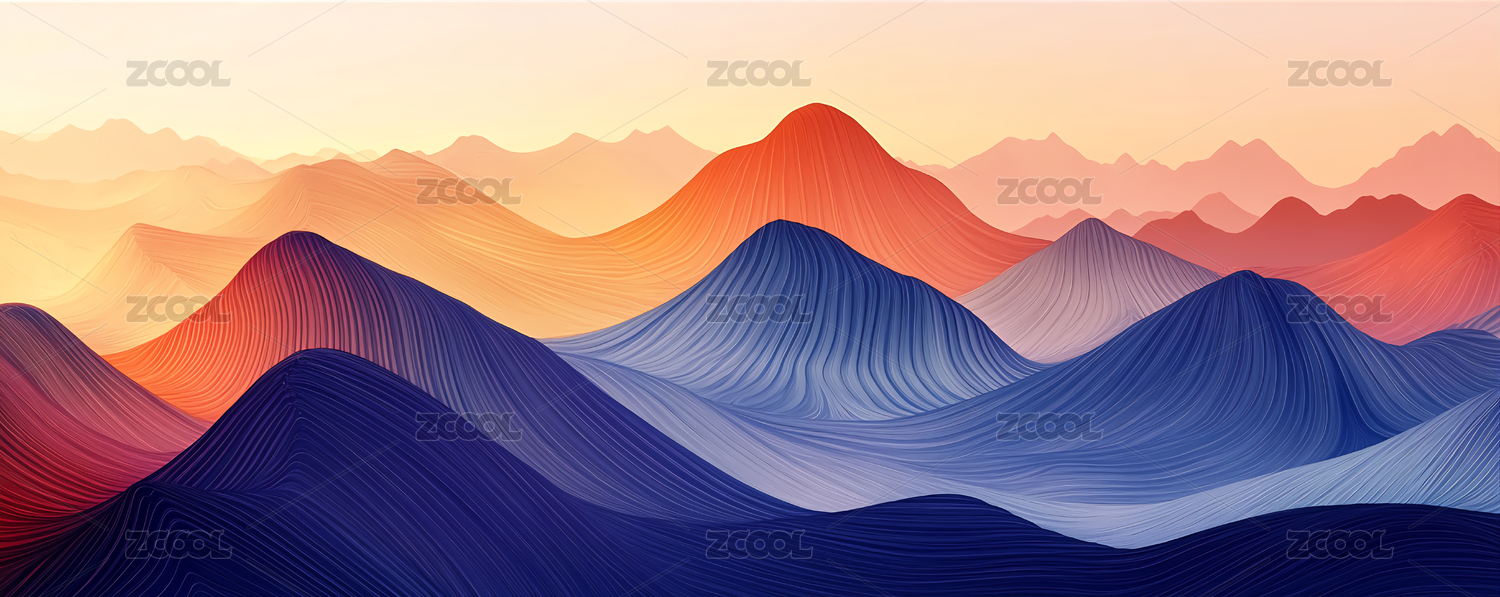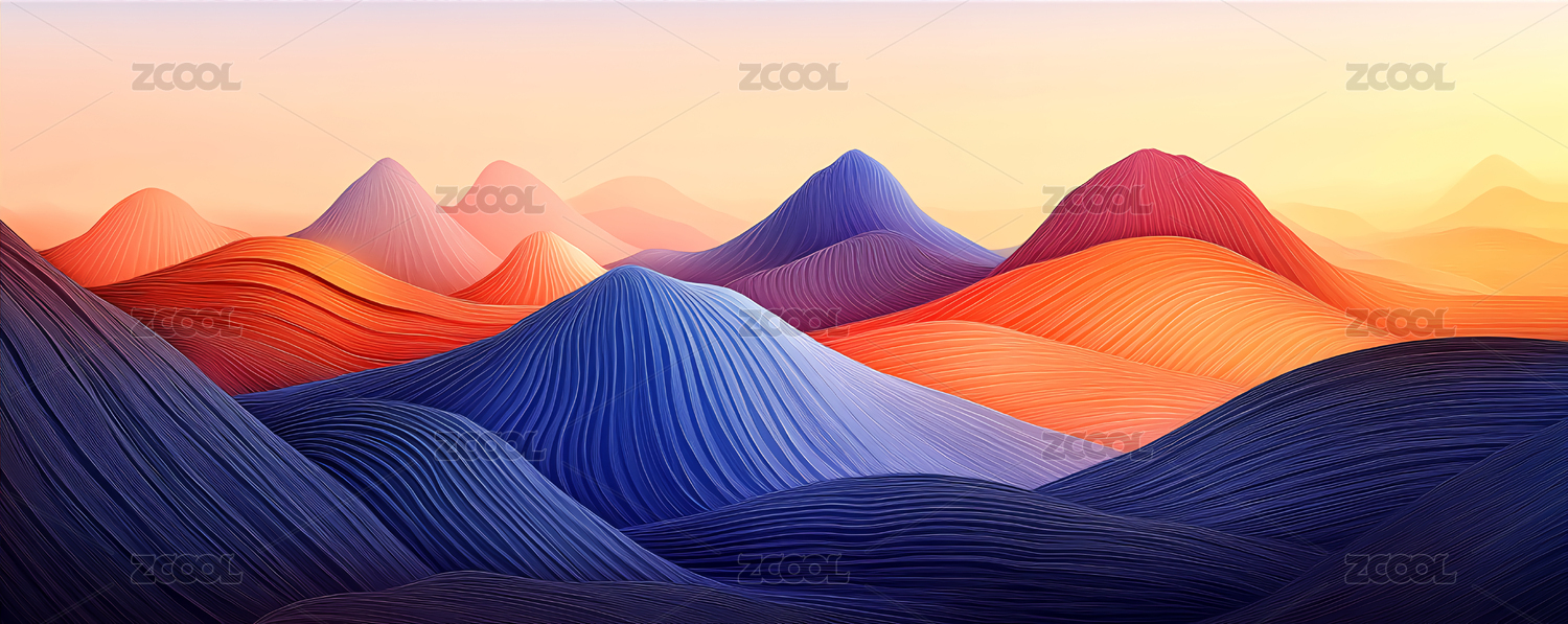 3D清新色彩缤纷的抽象波浪山脉纹理背景