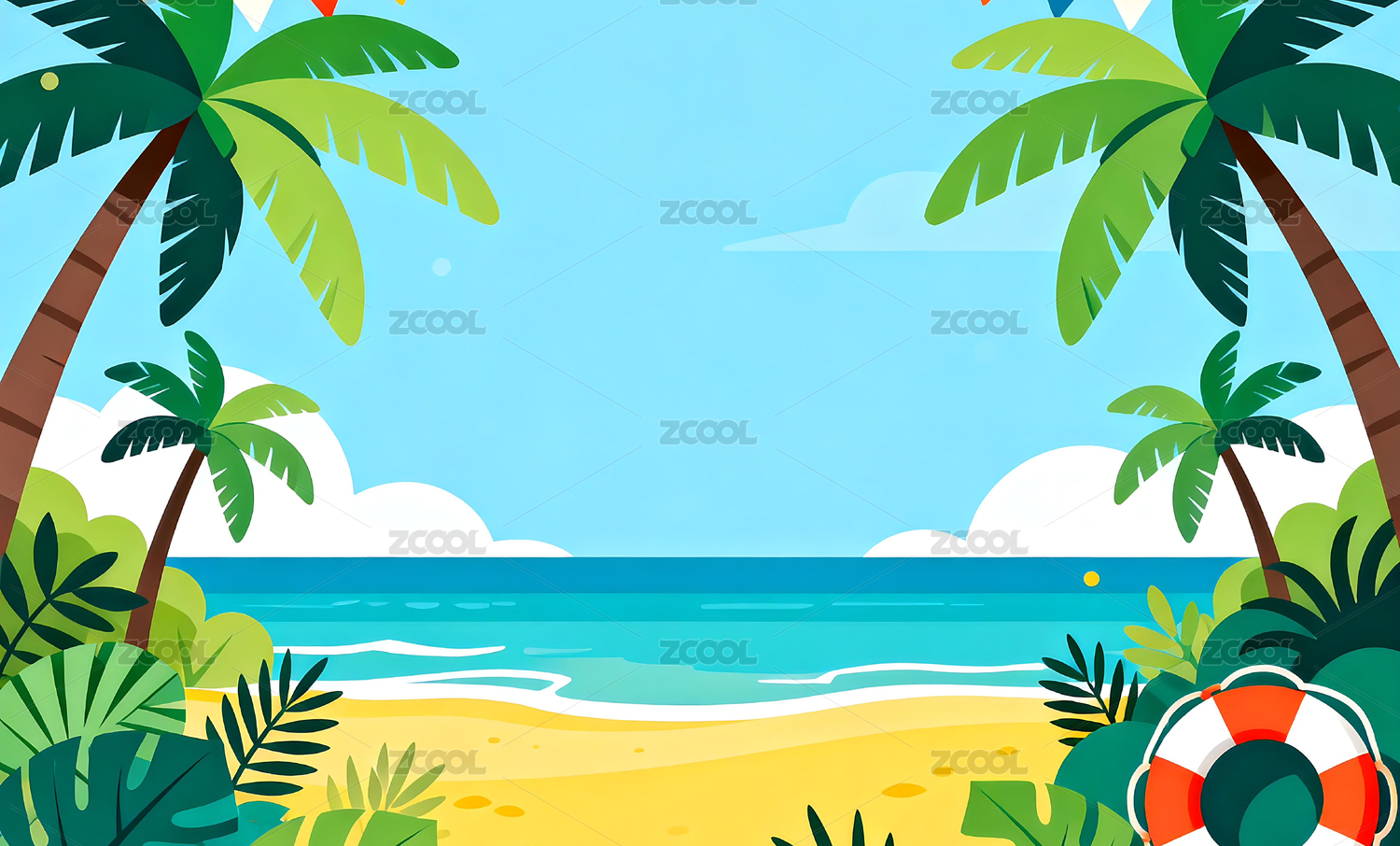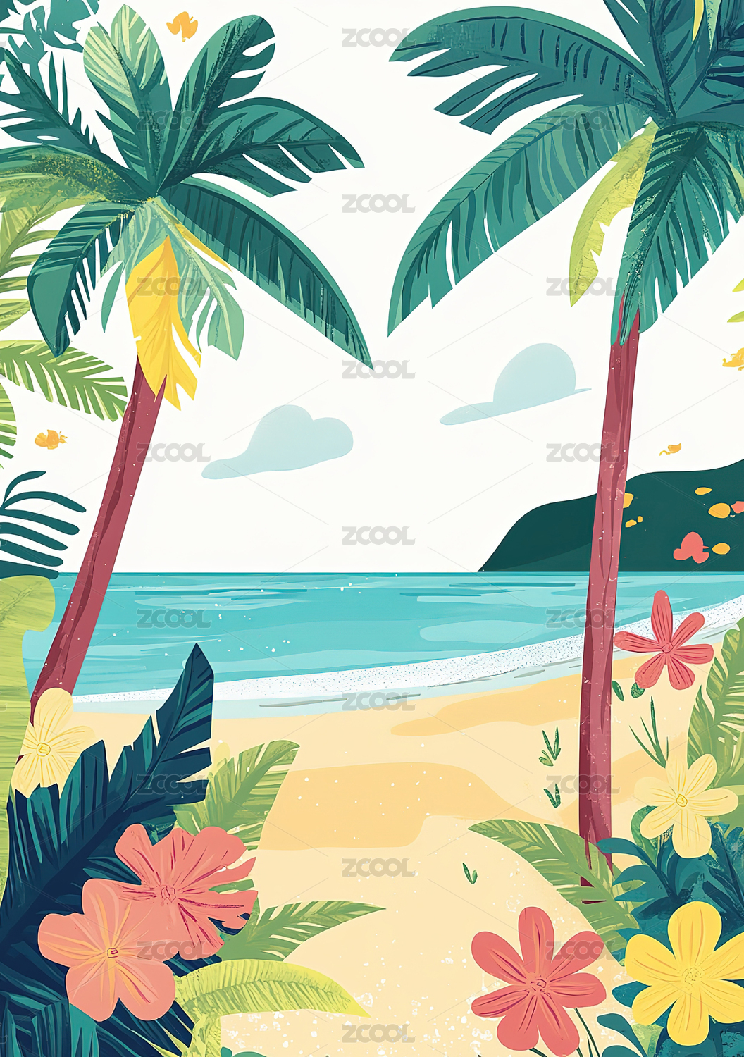 扁平风格,自然,户外,海边,沙滩,插画,背景,壁纸,天空,椰子树