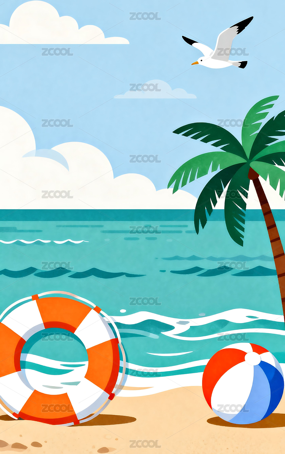 扁平风格,自然,户外,海边,沙滩,插画,背景,壁纸,天空,椰子树