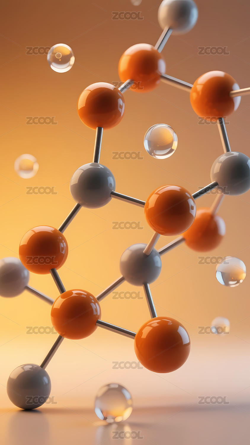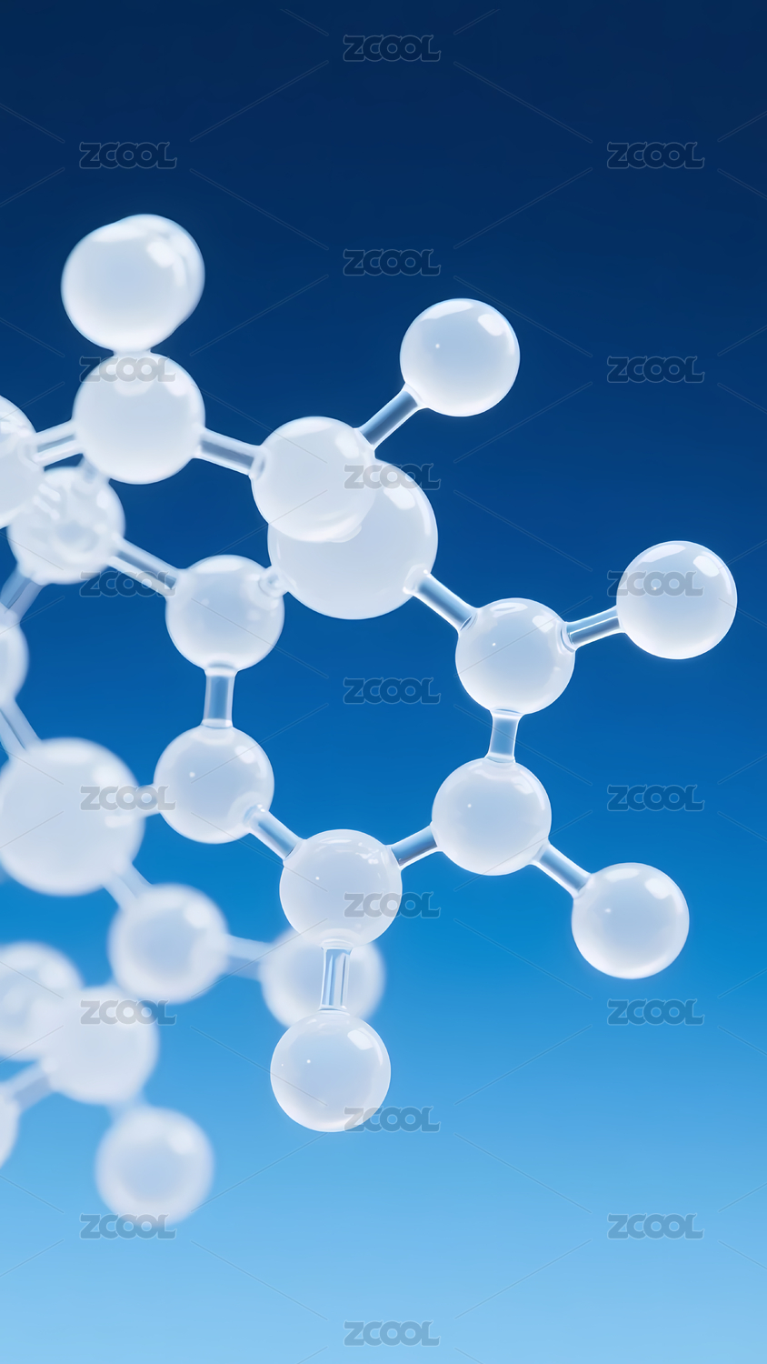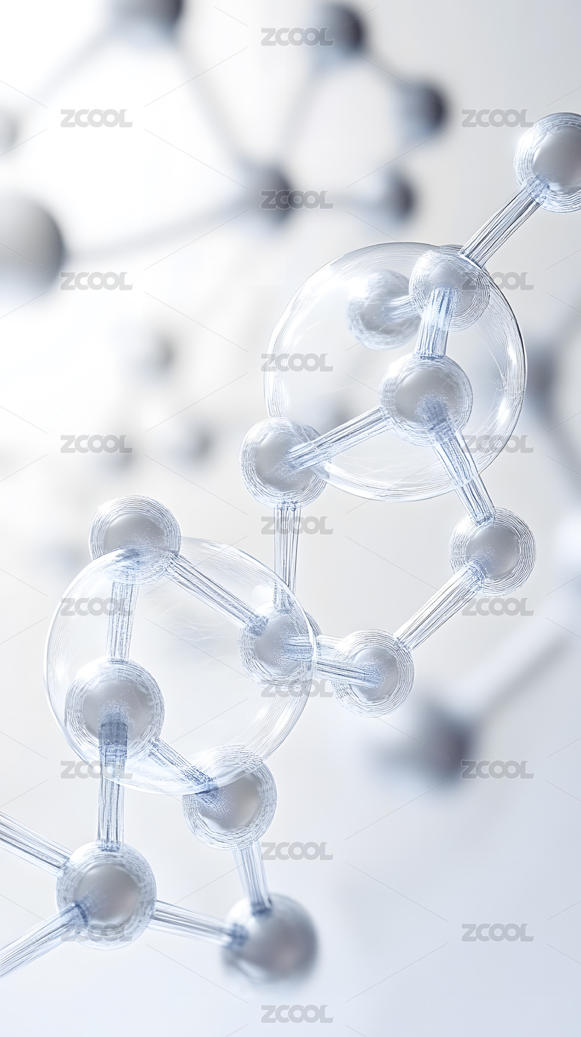 蓝色透明护肤品分子三维渲染