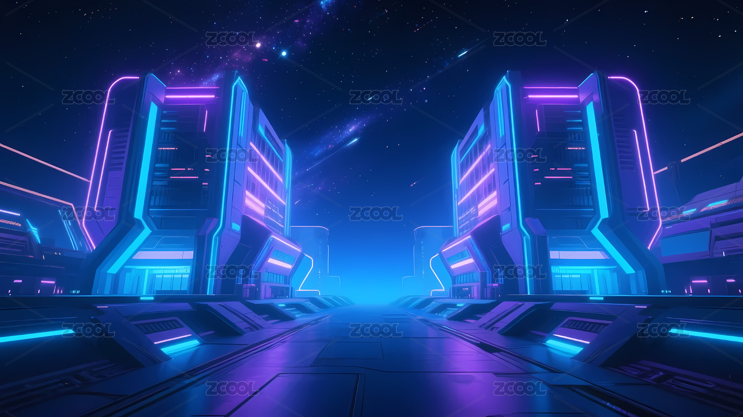 天空,渐变,深色,科技,未来,建筑,灯光,霓虹,夜景,冷峻