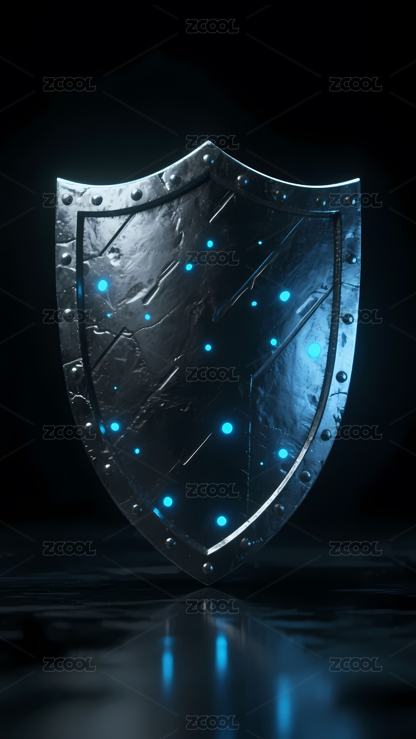 金属质感盾牌与科技光点