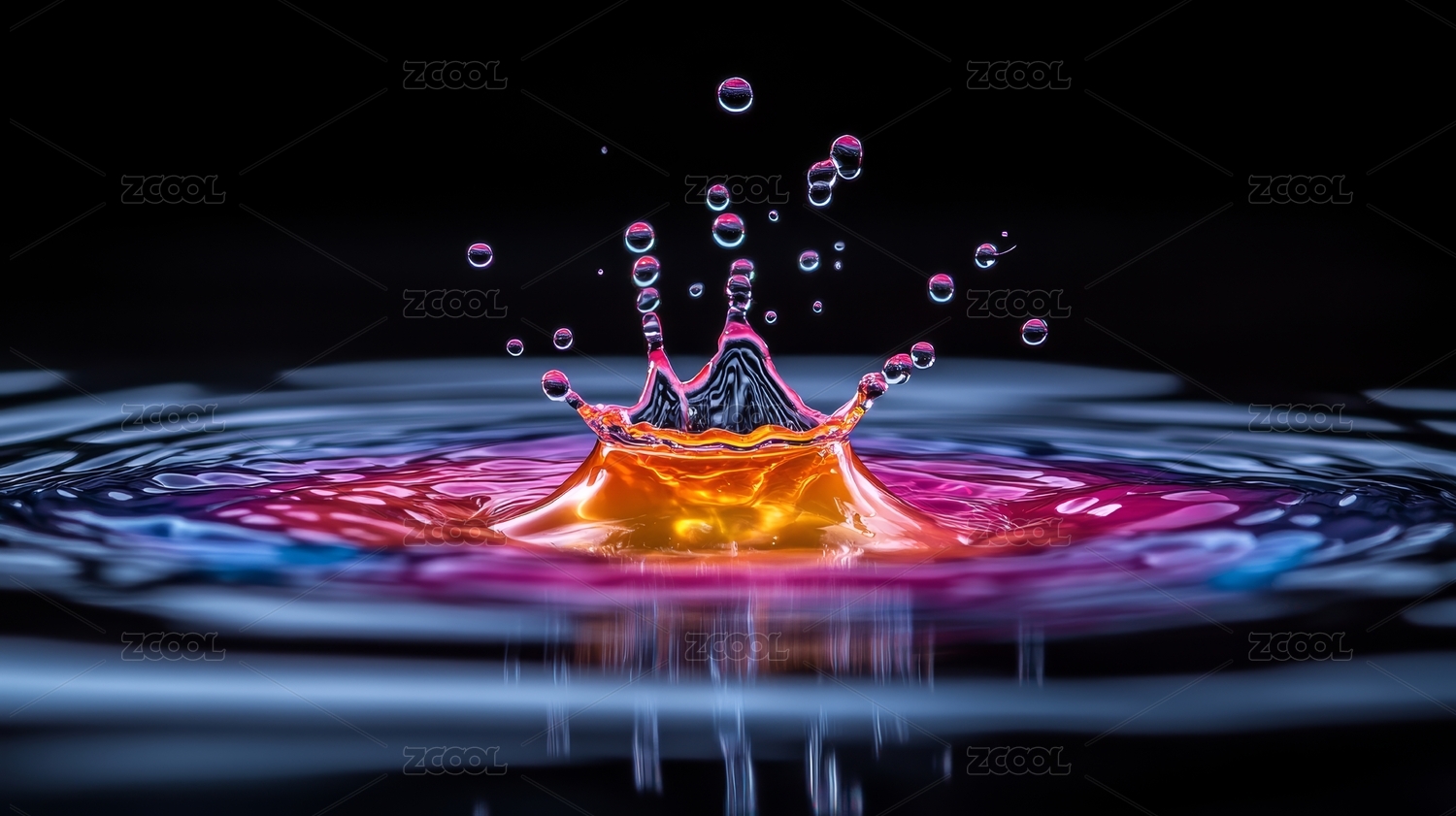 水滴,彩色,溅落,水面,动态,美感,光影,波纹,反射,明亮