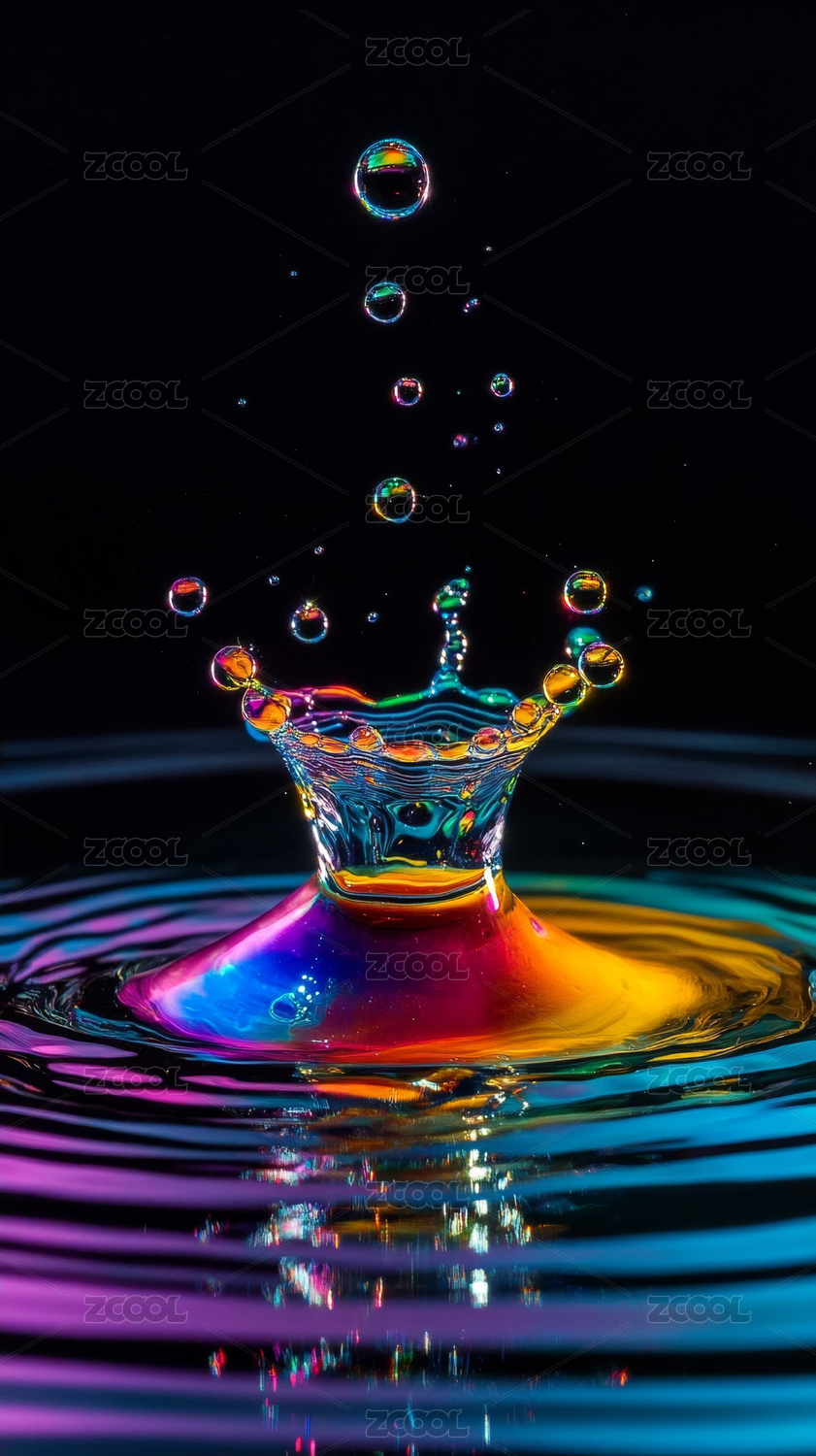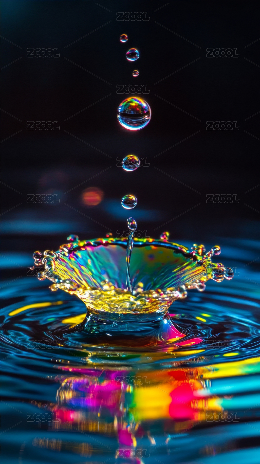水滴,碰撞,水面,彩色,光晕,动态,波纹,反射,明亮,流动