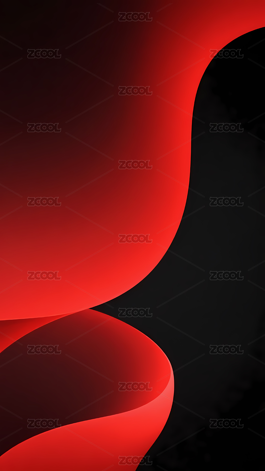 红色曲线和黑色阴影的抽象
