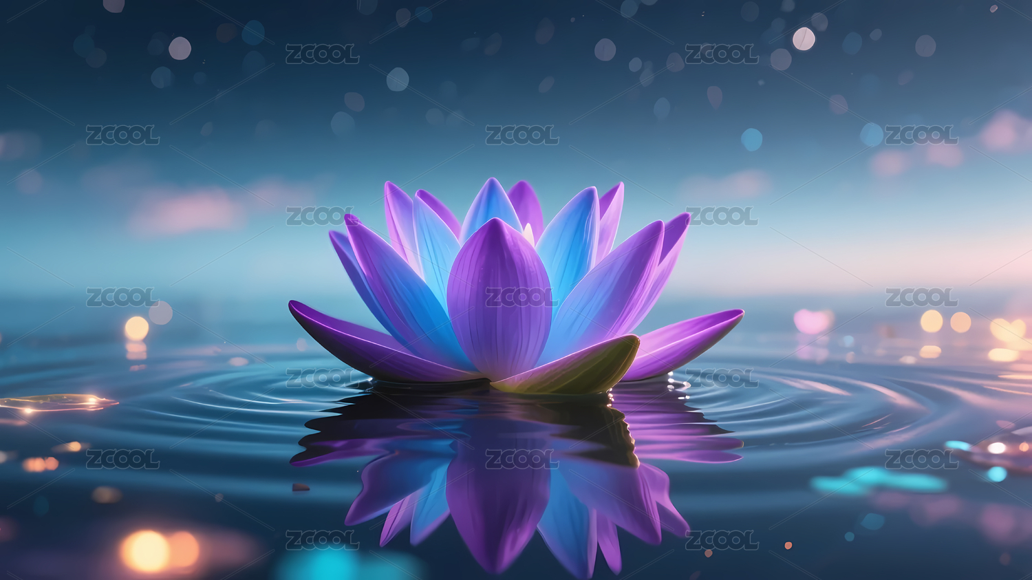 梦幻,抽象,莲花,蓝色,发光,绽放,意境,美丽,未来,科技