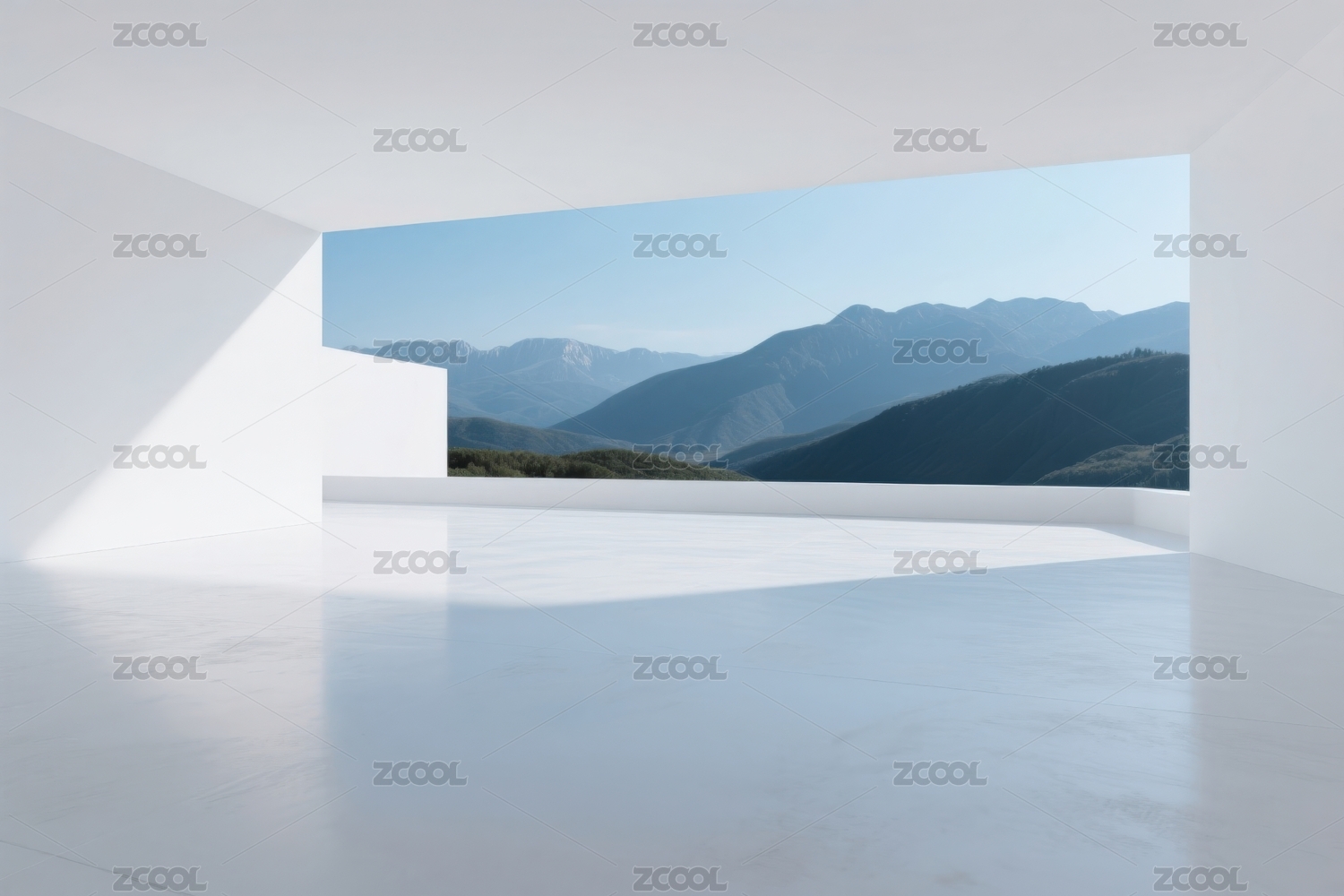 极简空间与山脉景观