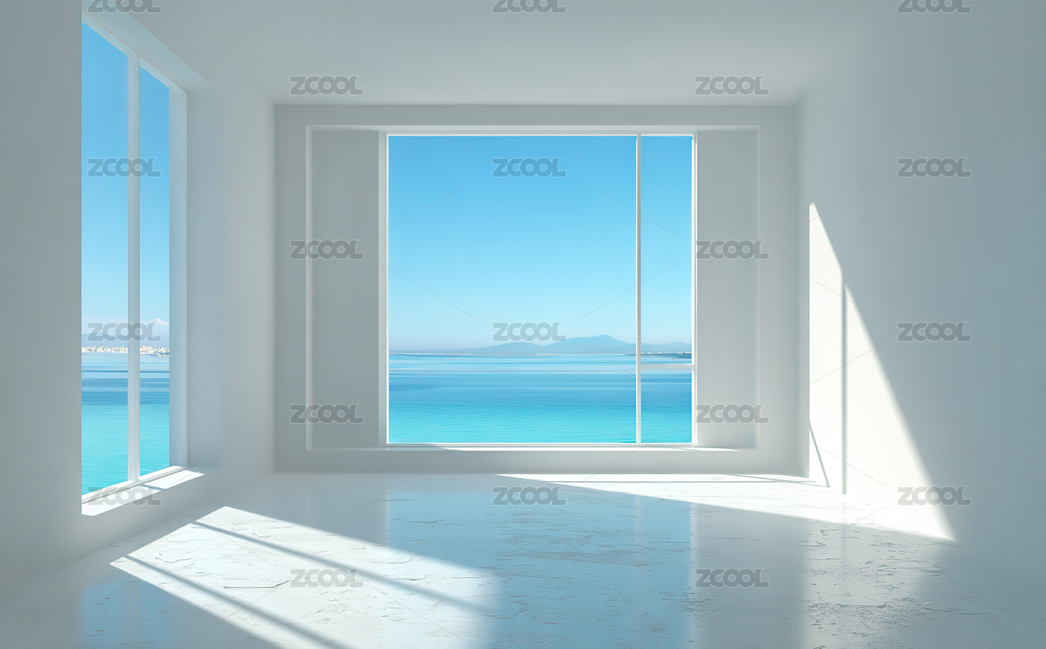 白色室内空间与海景窗