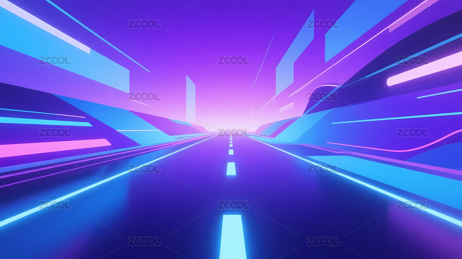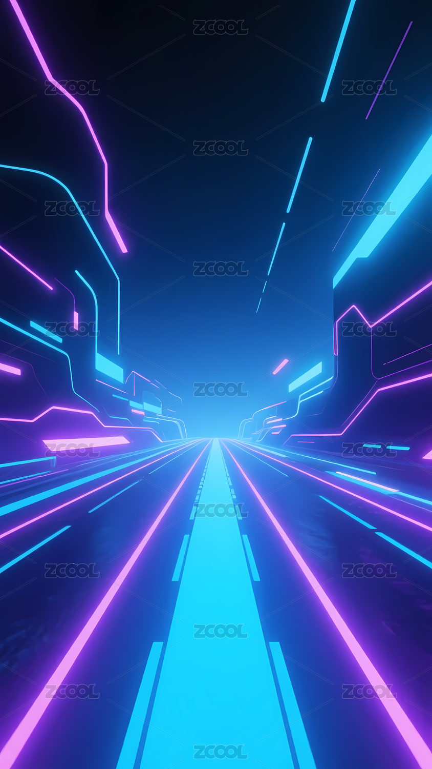 未来科技感的蓝紫光束道路