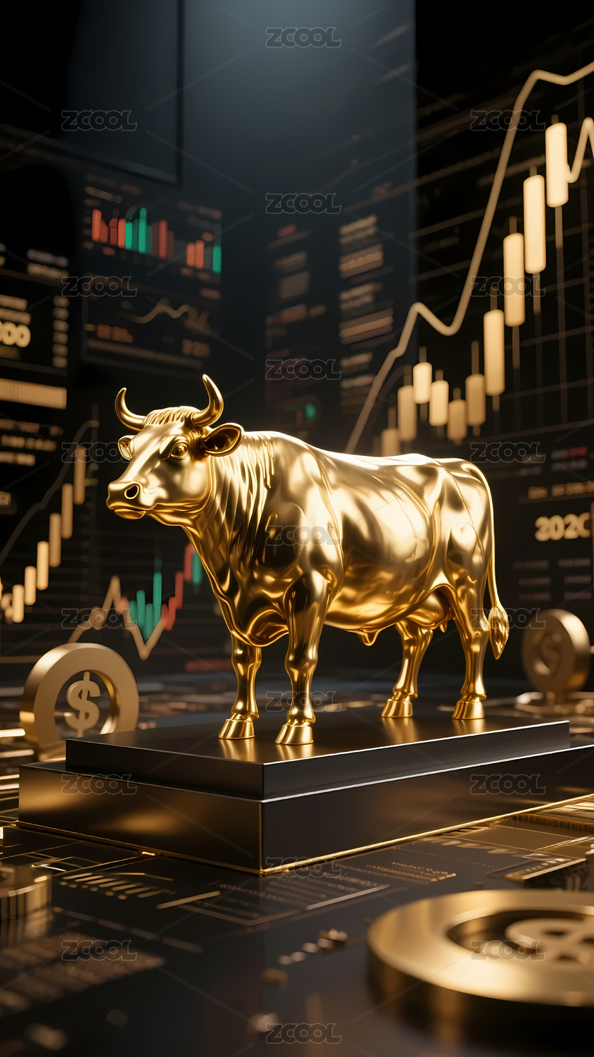 明亮,背景,绿色,装饰,蓝色,艺术,金色,现代,牛雕像,柱状图