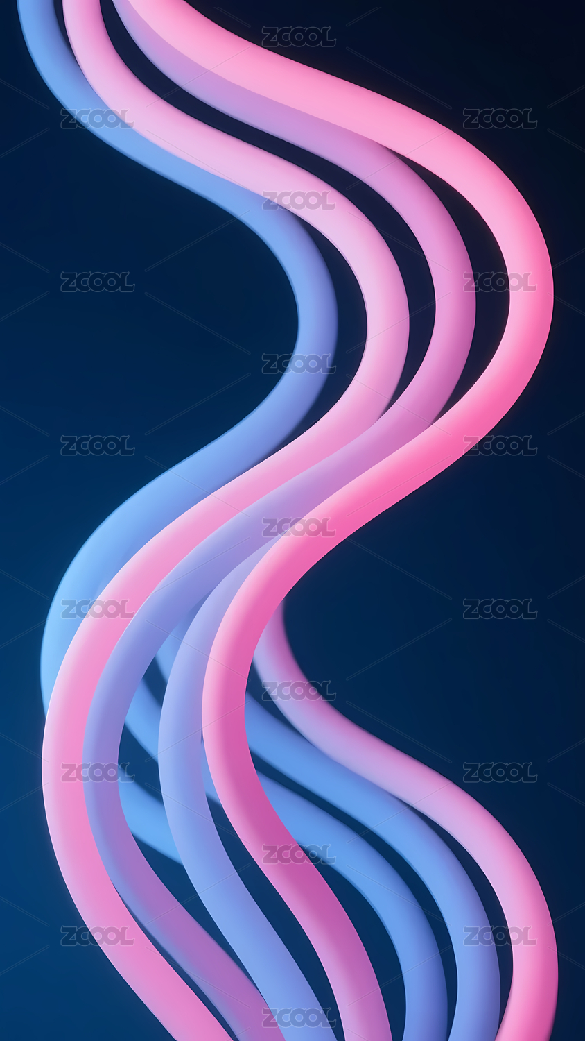 霓虹曲线在深蓝背景中蜿蜒