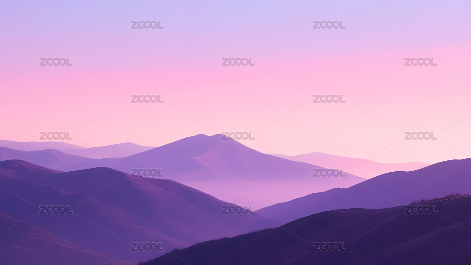 紫粉渐变远山轮廓