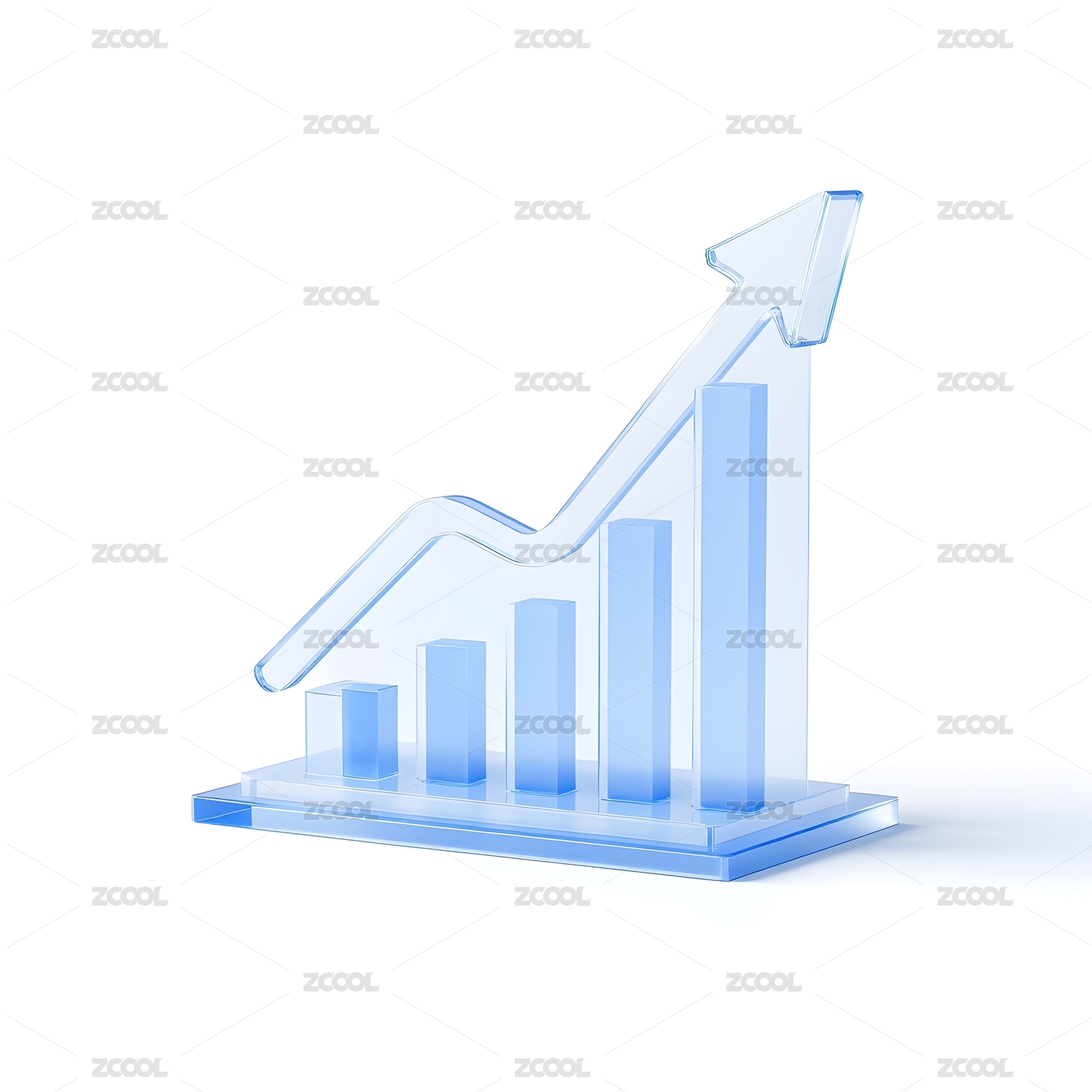 蓝色透明上升柱状图