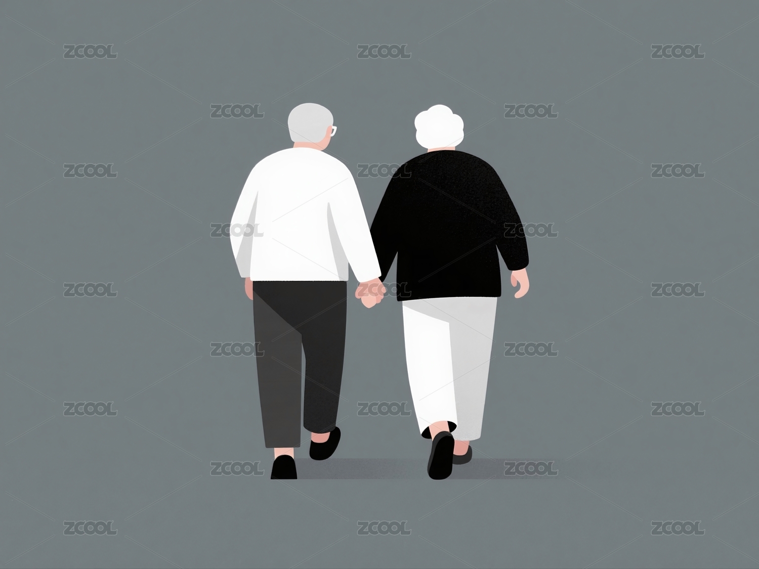 手绘风格老人携手行走图