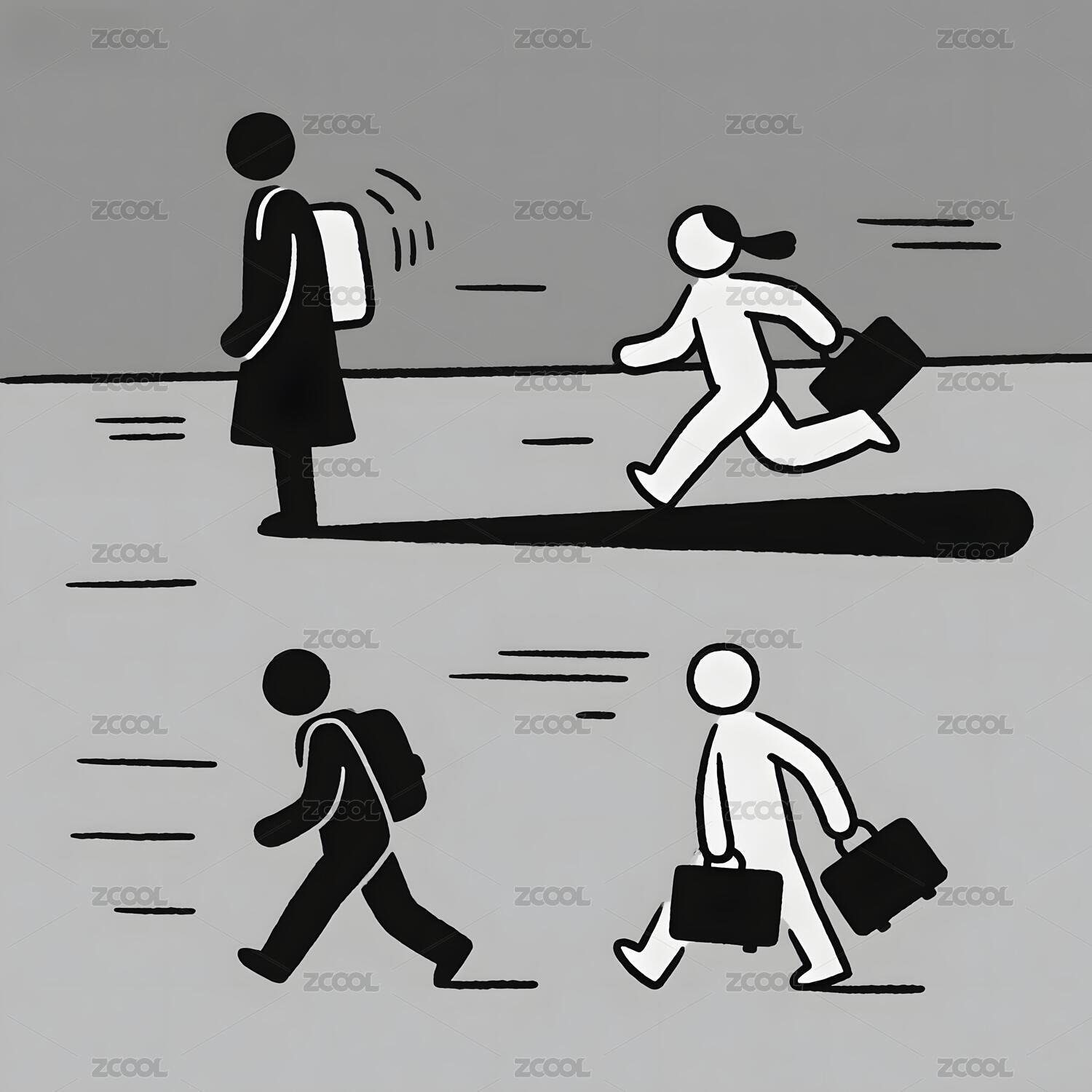 手绘,风格,老人,携手,行走,图画,素描,线条,简洁,艺术