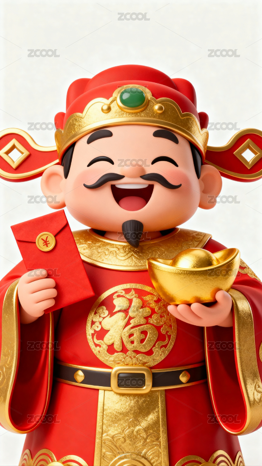 财神,元宝,金币,笑脸,金色,喜庆,传统,服饰,花纹,节日