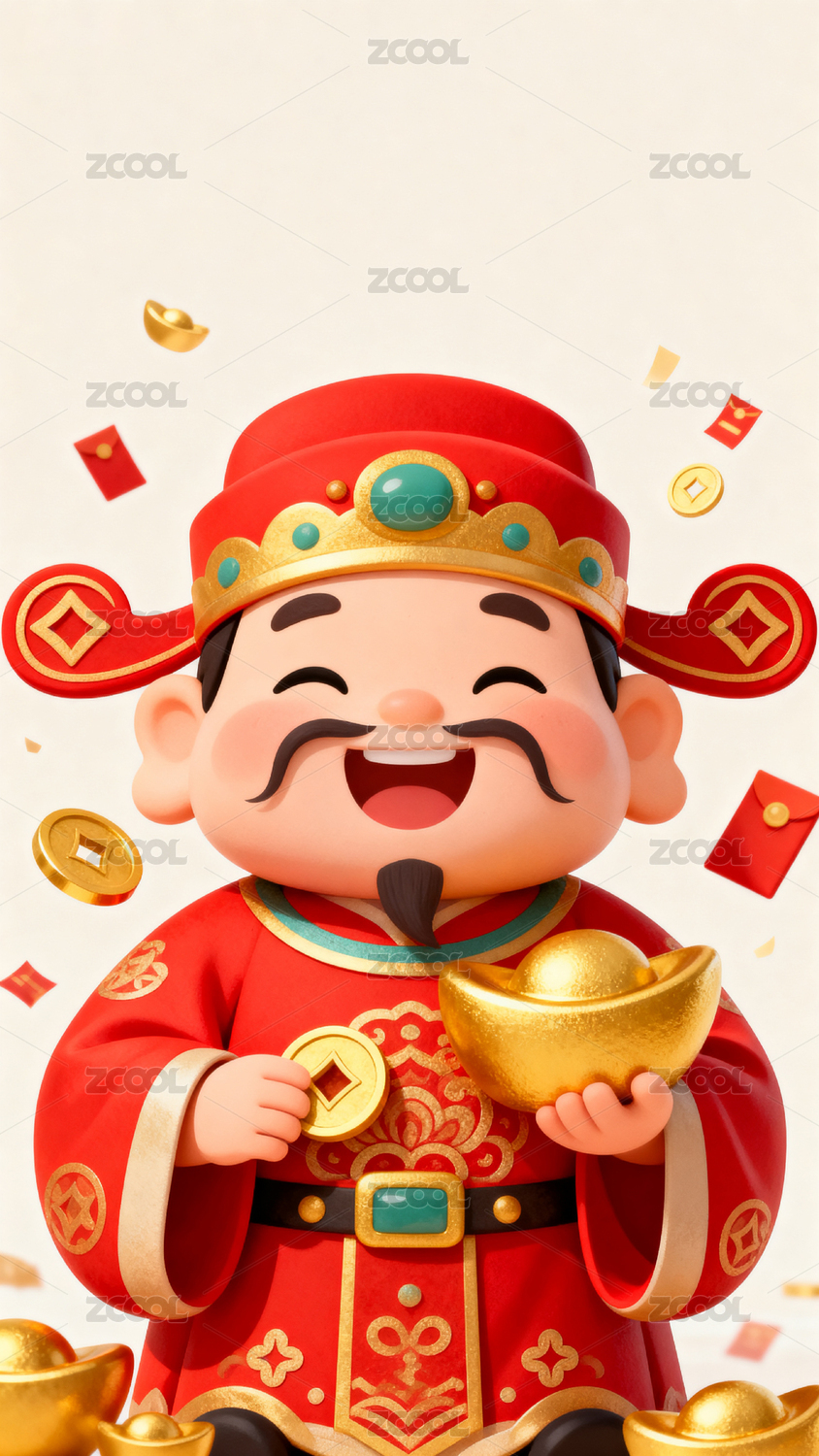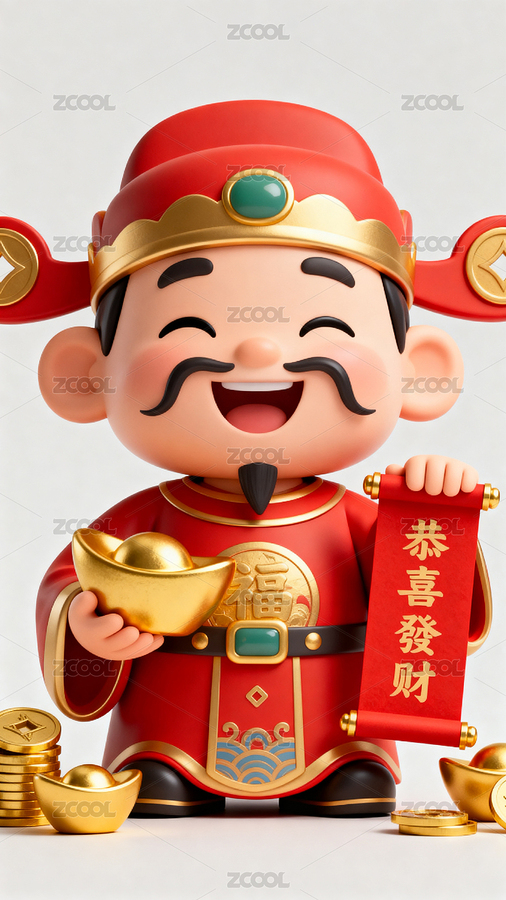 财神爷手持金元宝喜庆迎春