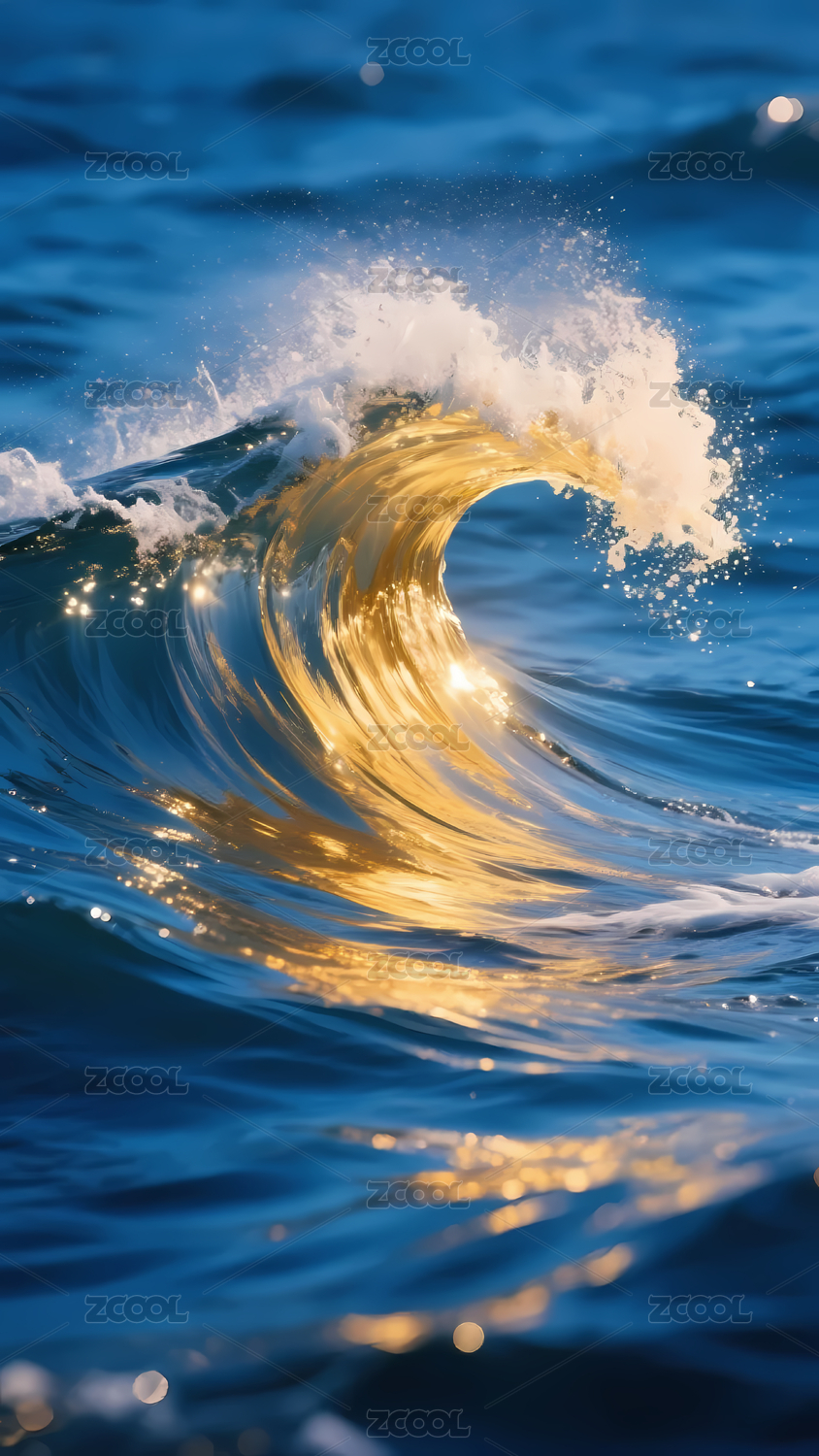 蓝色,自然,金色,闪耀,天空,海浪,阳光,海水,波涛,远处