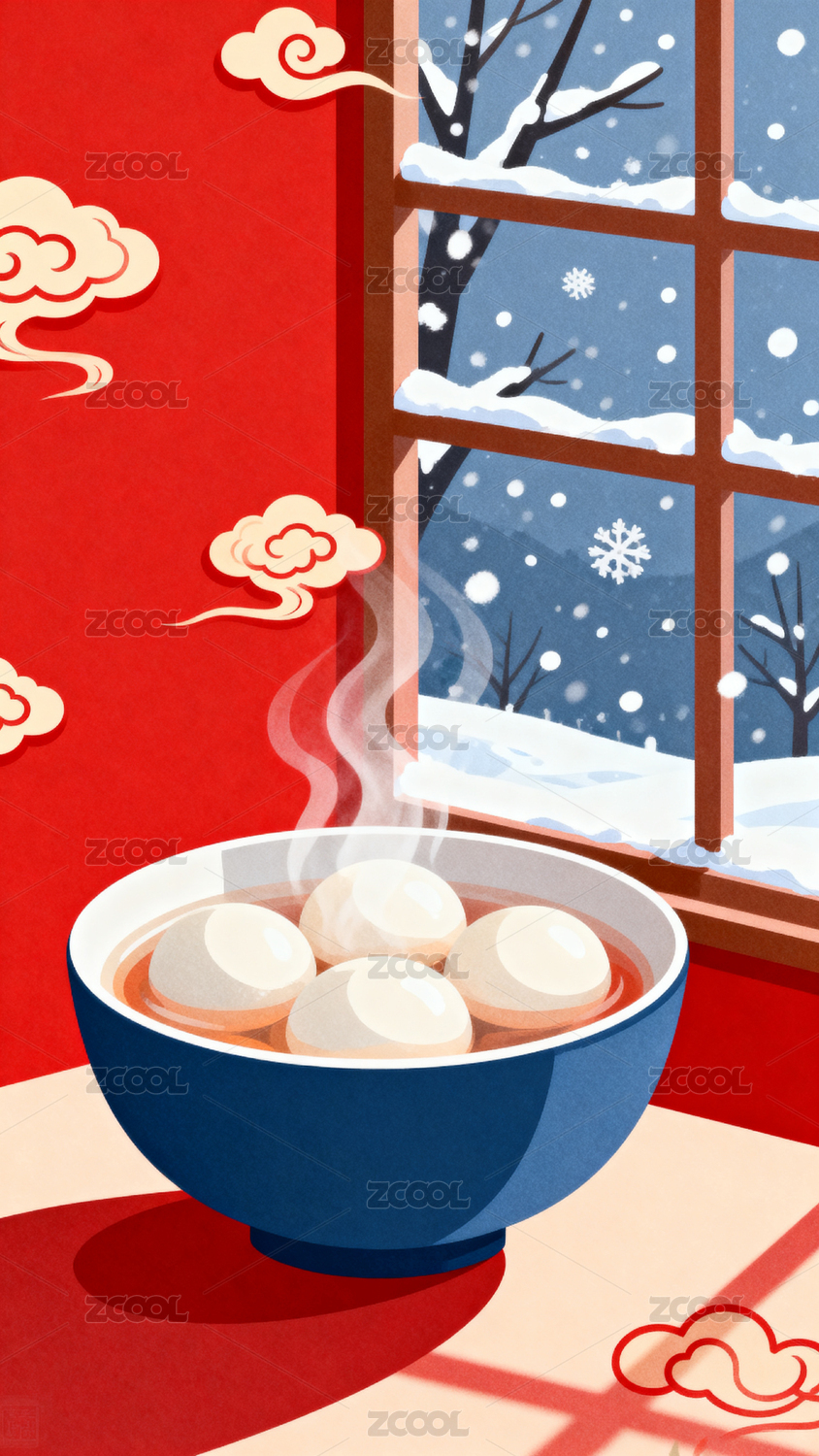 汤圆,热气,蒸汽,传统,节日,汤,红色,碗,背景,白色