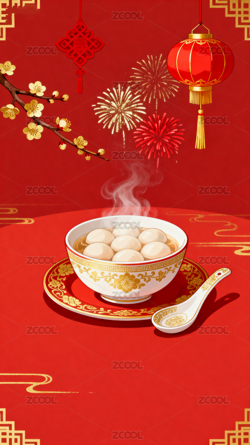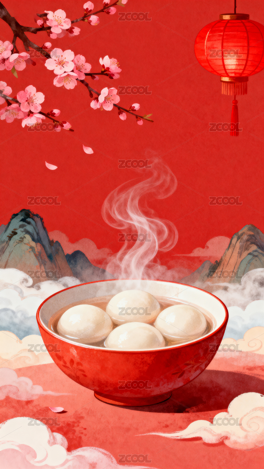 红色,装饰,餐具,食物,传统,汤圆,碗,热气,蒸汽,背景