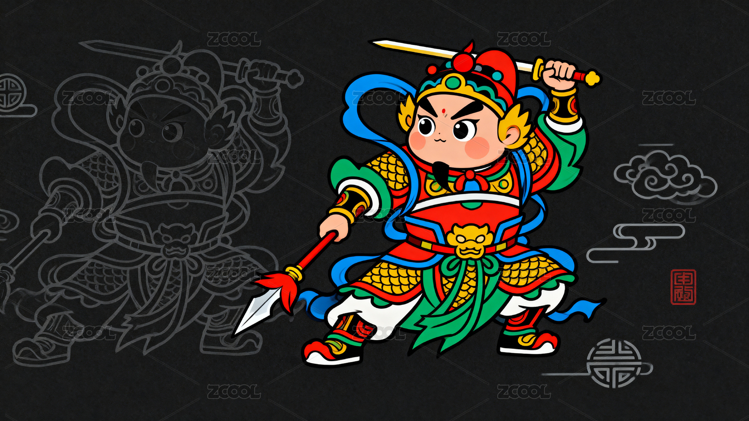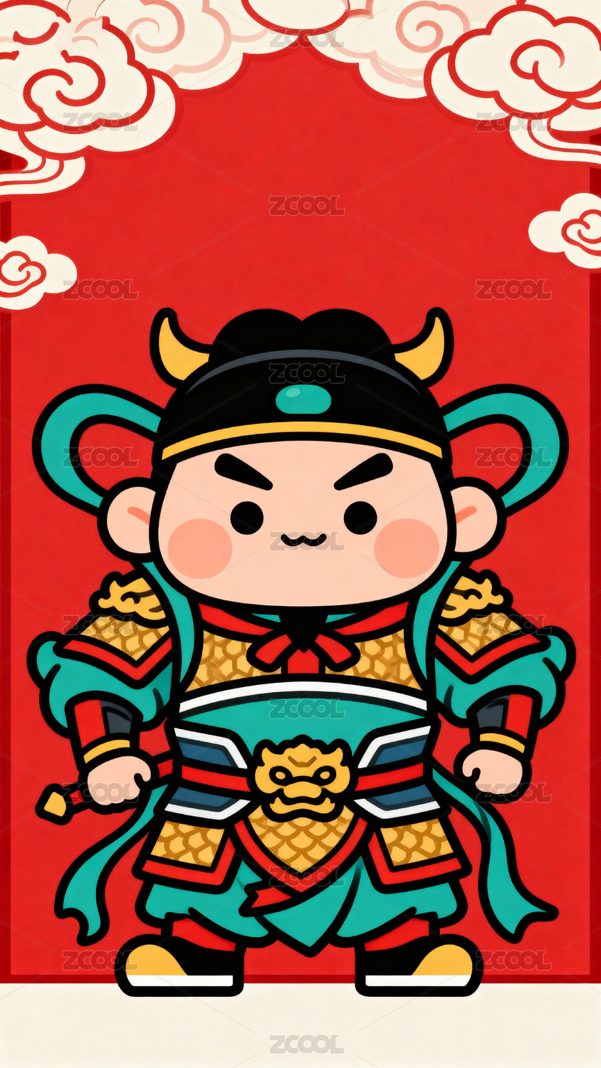 卡通门神将军守护吉祥