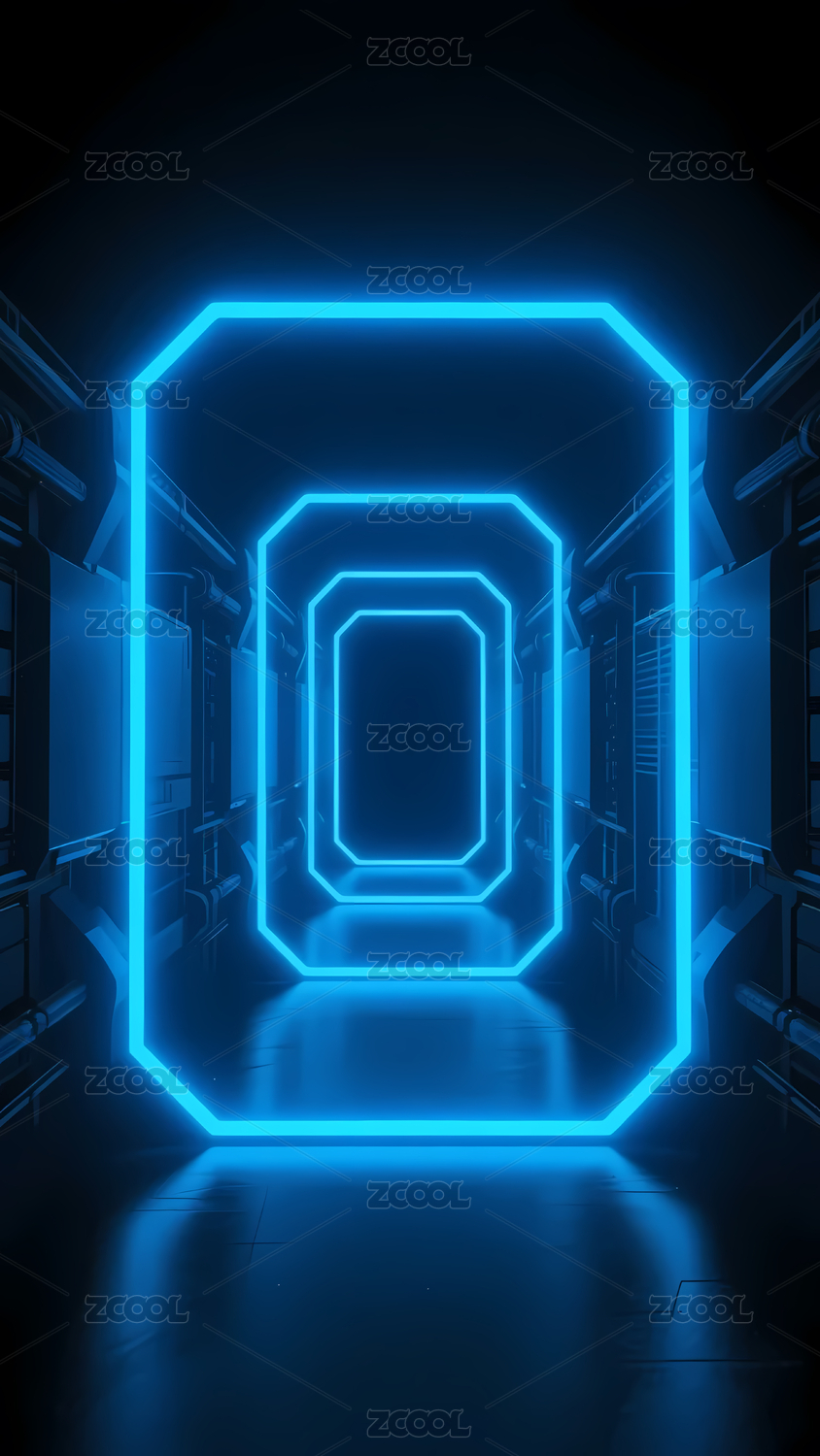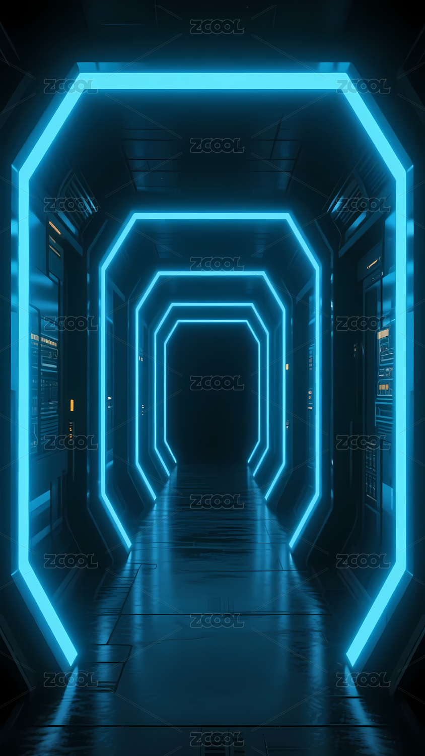 未来感蓝色霓虹走廊