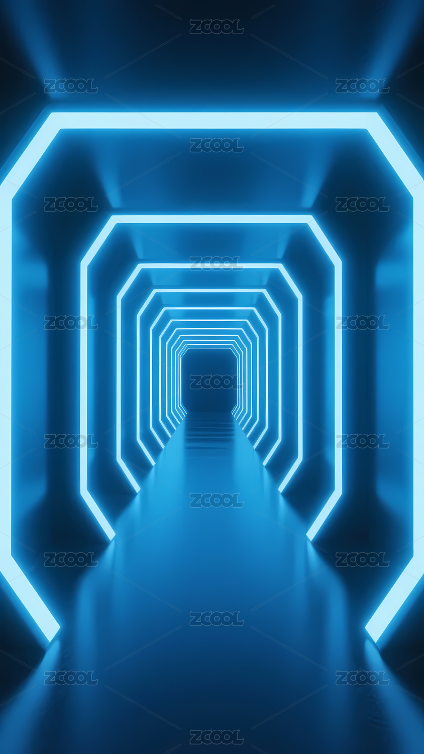 蓝色霓虹几何隧道