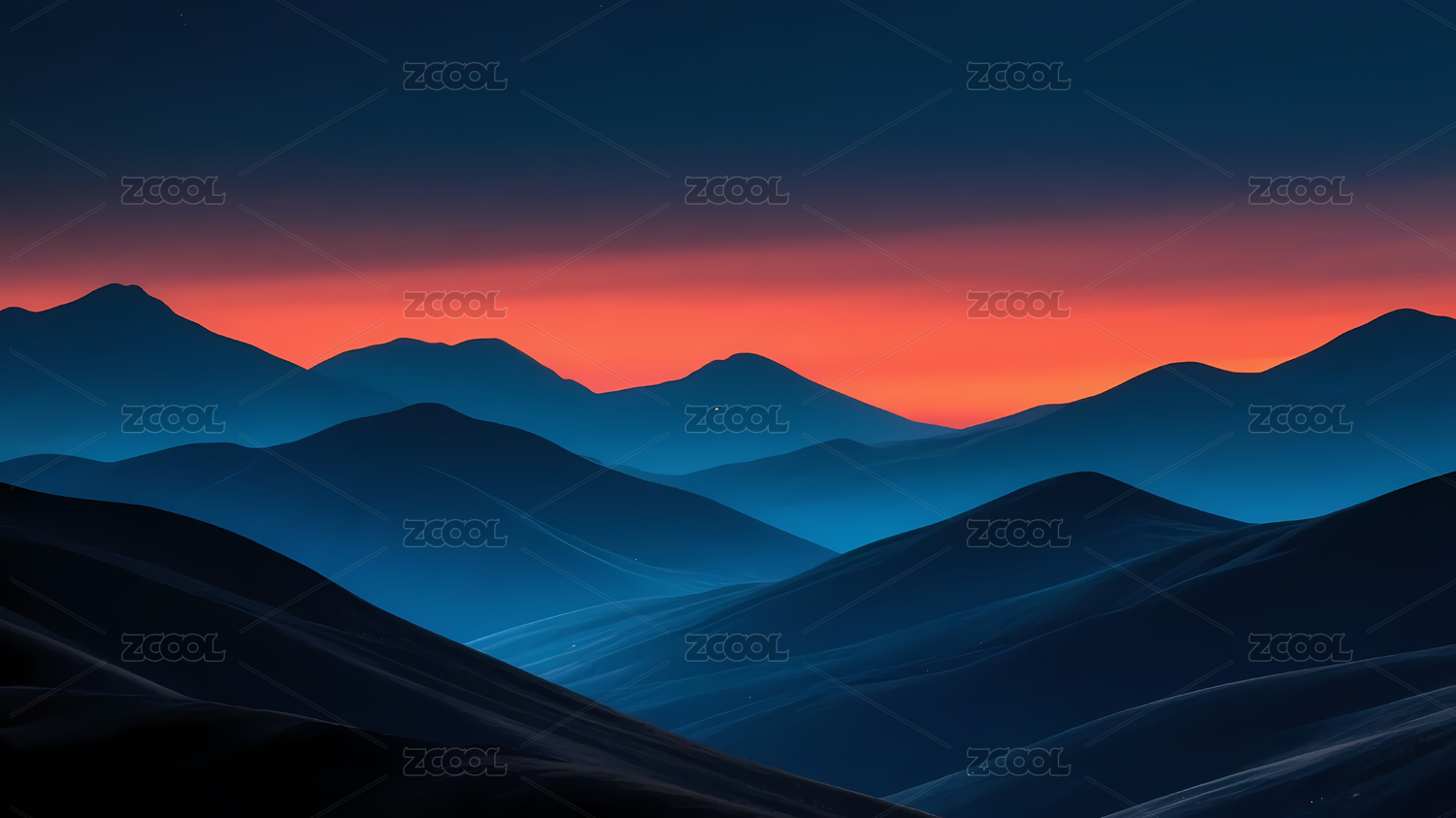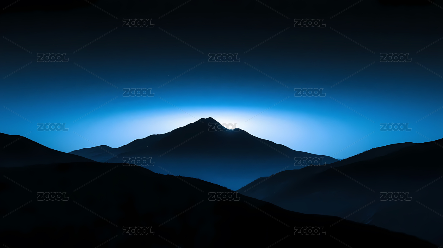 黑色,深蓝,宁静,神秘,夜空,山峰,紫光,轮廓,自然,光芒