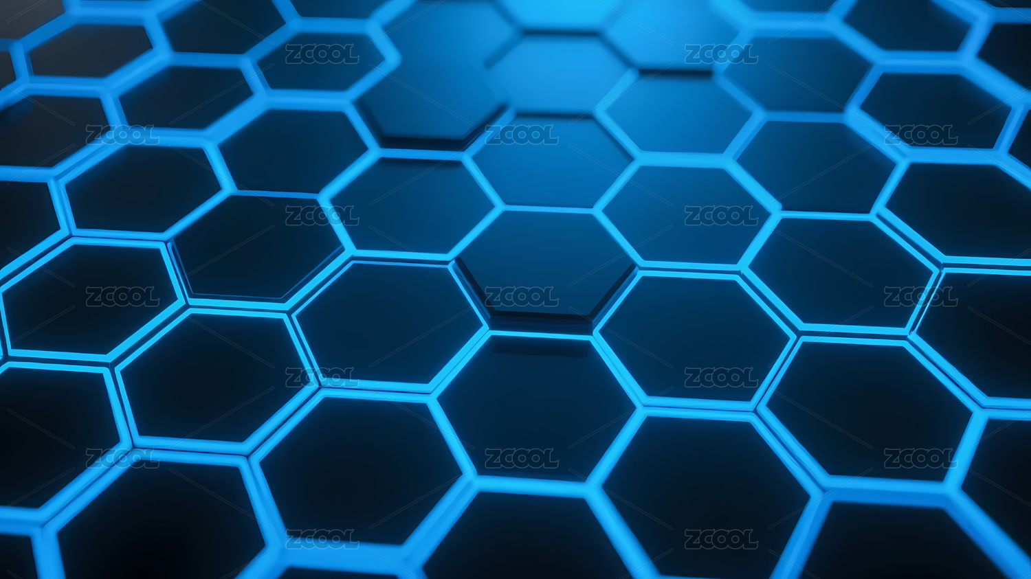 蓝色发光六边形网格