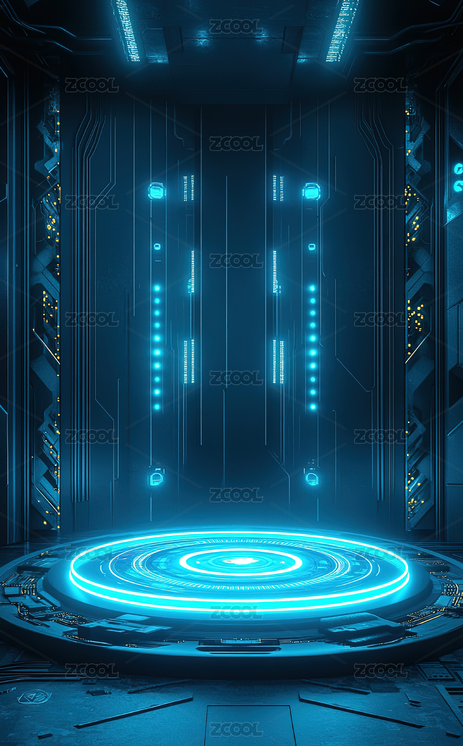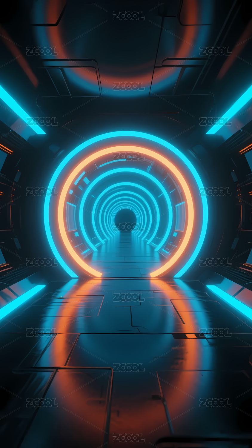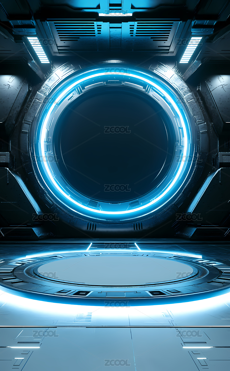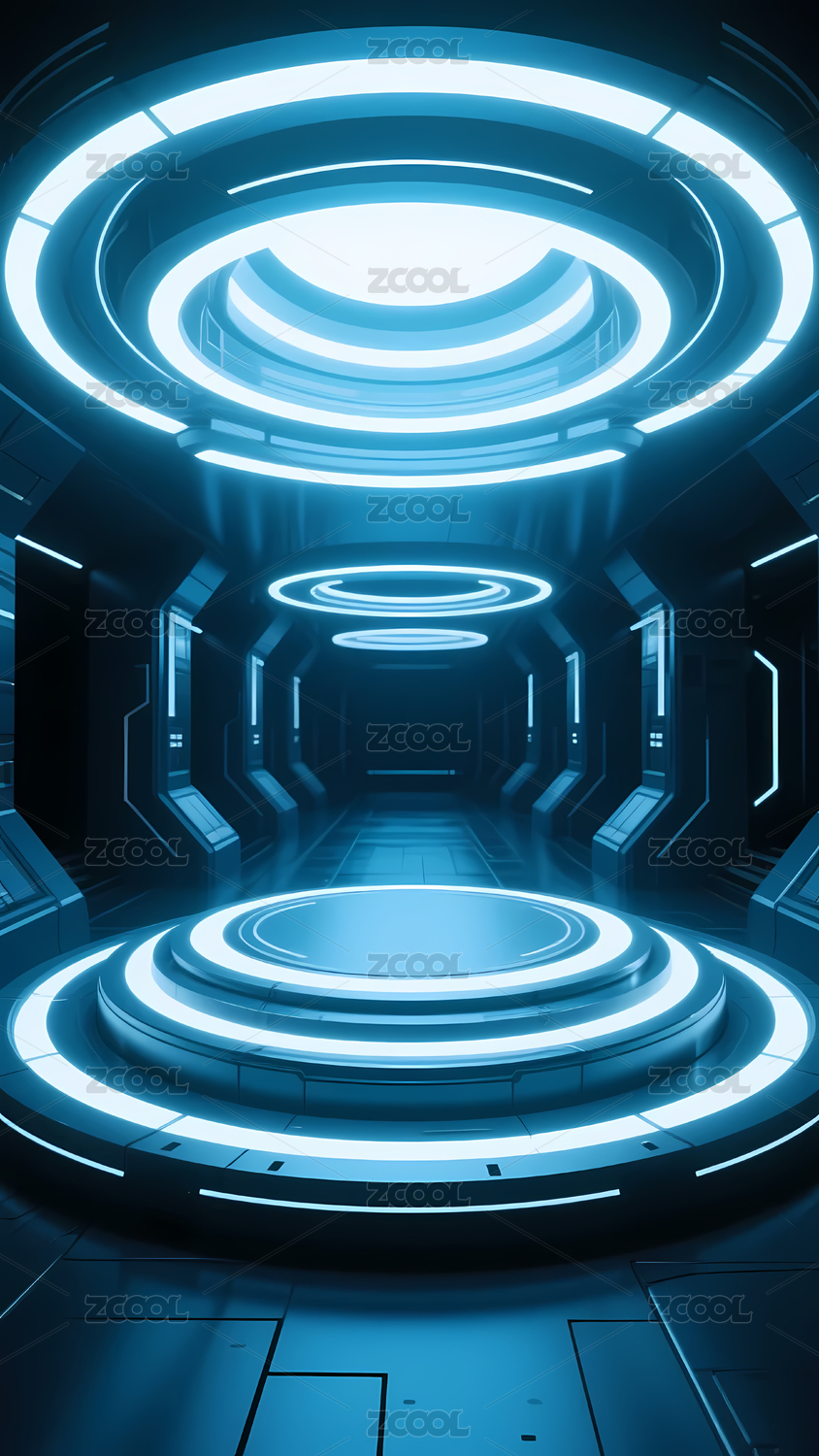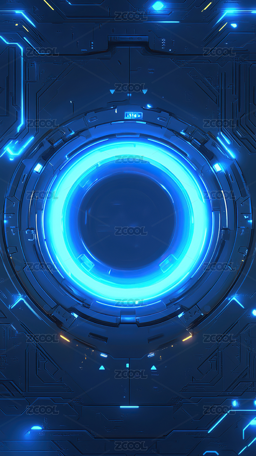 蓝色,科技,深色,背景,未来,曲线,灯光,圆形,霓虹灯,对称